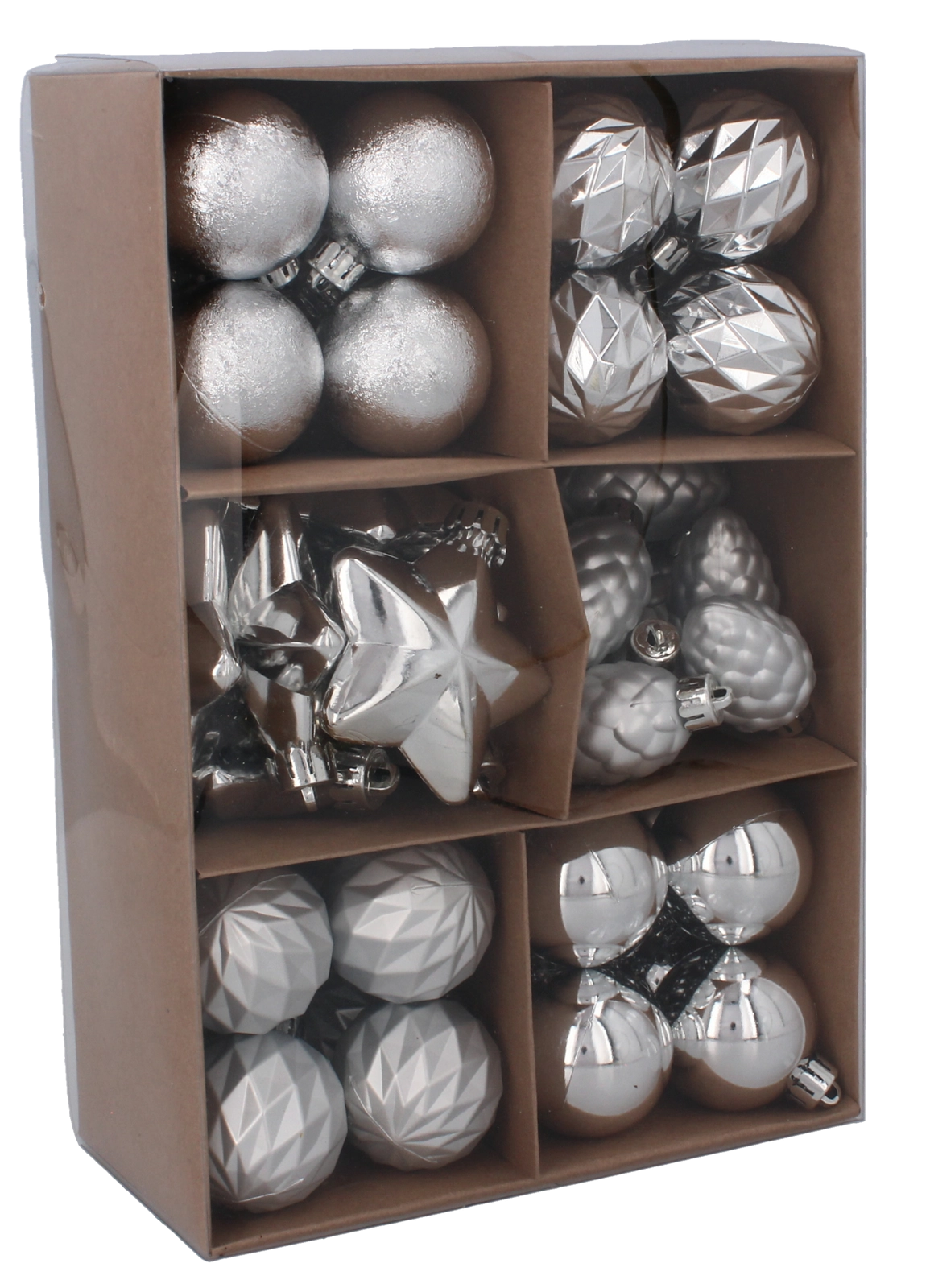 Ozdoby wykonane są z nietłukącego, lekkiego tworzywa, dzięki czemu łatwo je zawiesić i są idealne do użytku wewnętrznego. Zintegrowane oczka i sznureczki zapewniają szybkie i bezpieczne mocowanie na gałązkach choinki, girlandach czy wieńcach.
