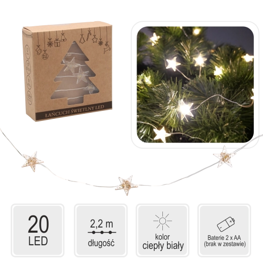 - 20 diod LED z ciepłym białym światłem dla przytulnej atmosfery