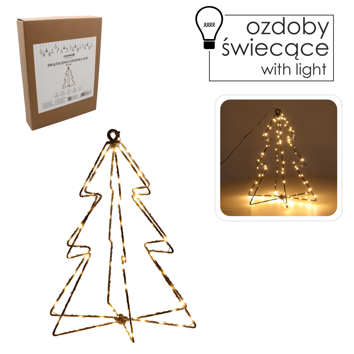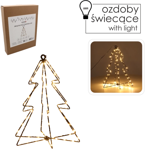 Minimalistyczna druciana choinka z wbudowanymi mikro LED rozświetli dom przyjemnym, ciepłym odcieniem. 95 równomiernie rozmieszczonych diod tworzy przytulną atmosferę i dopełnia świąteczną aranżację bez skomplikowanego montażu. Stabilna podstawa i subtelna sylwetka pasują do nowoczesnych i klasycznych wnętrz.