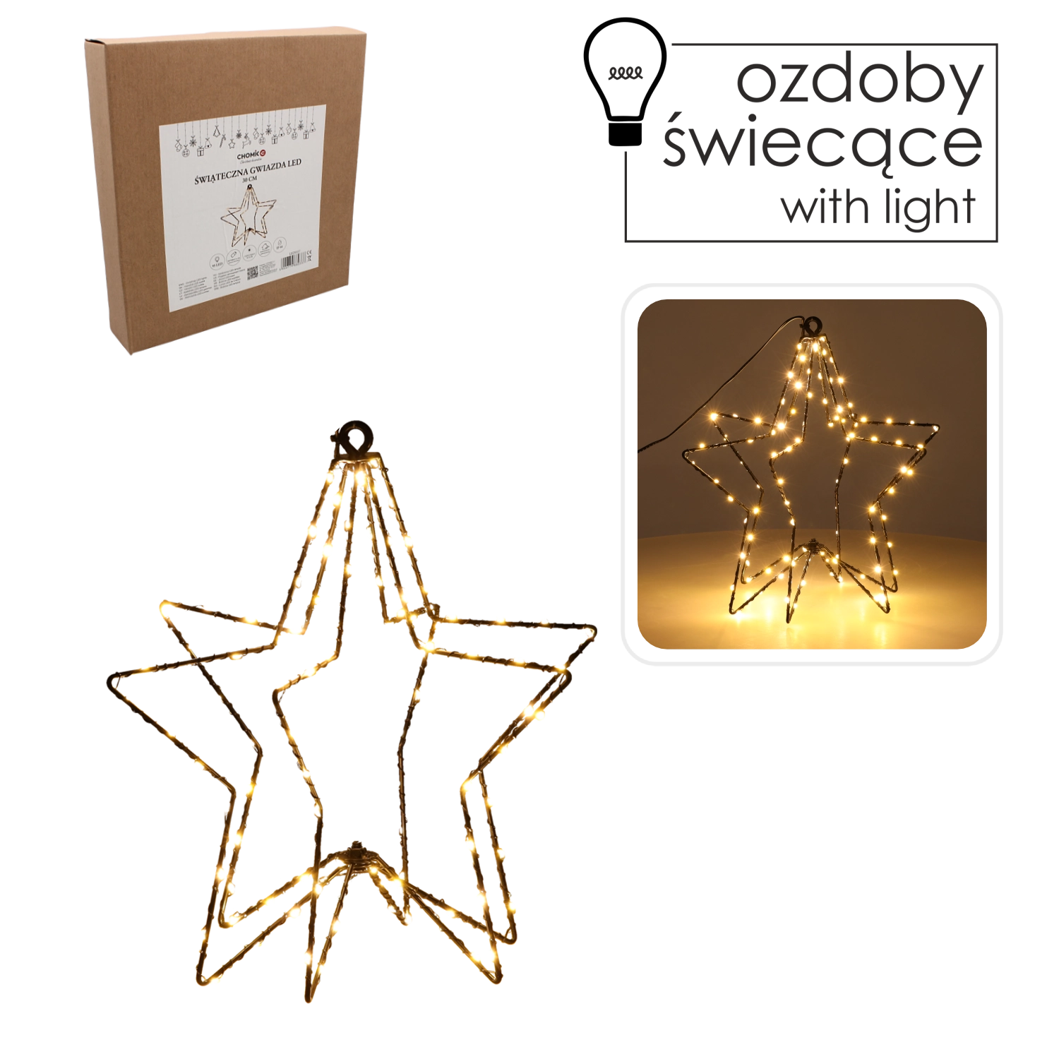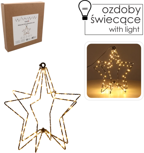 Gwiazdę można zawiesić w oknie, na ścianie, postawić na półce lub na świątecznie nakrytym stole. Klasa IP44 zapewnia ochronę przed bryzgami wody, dlatego najlepiej sprawdzi się we wnętrzach i przestrzeniach osłoniętych. Prosty design wyrazistej gwiazdy pasuje do aranżacji klasycznych i nowoczesnych, doskonale dopełniając pozostałe świąteczne dekoracje.