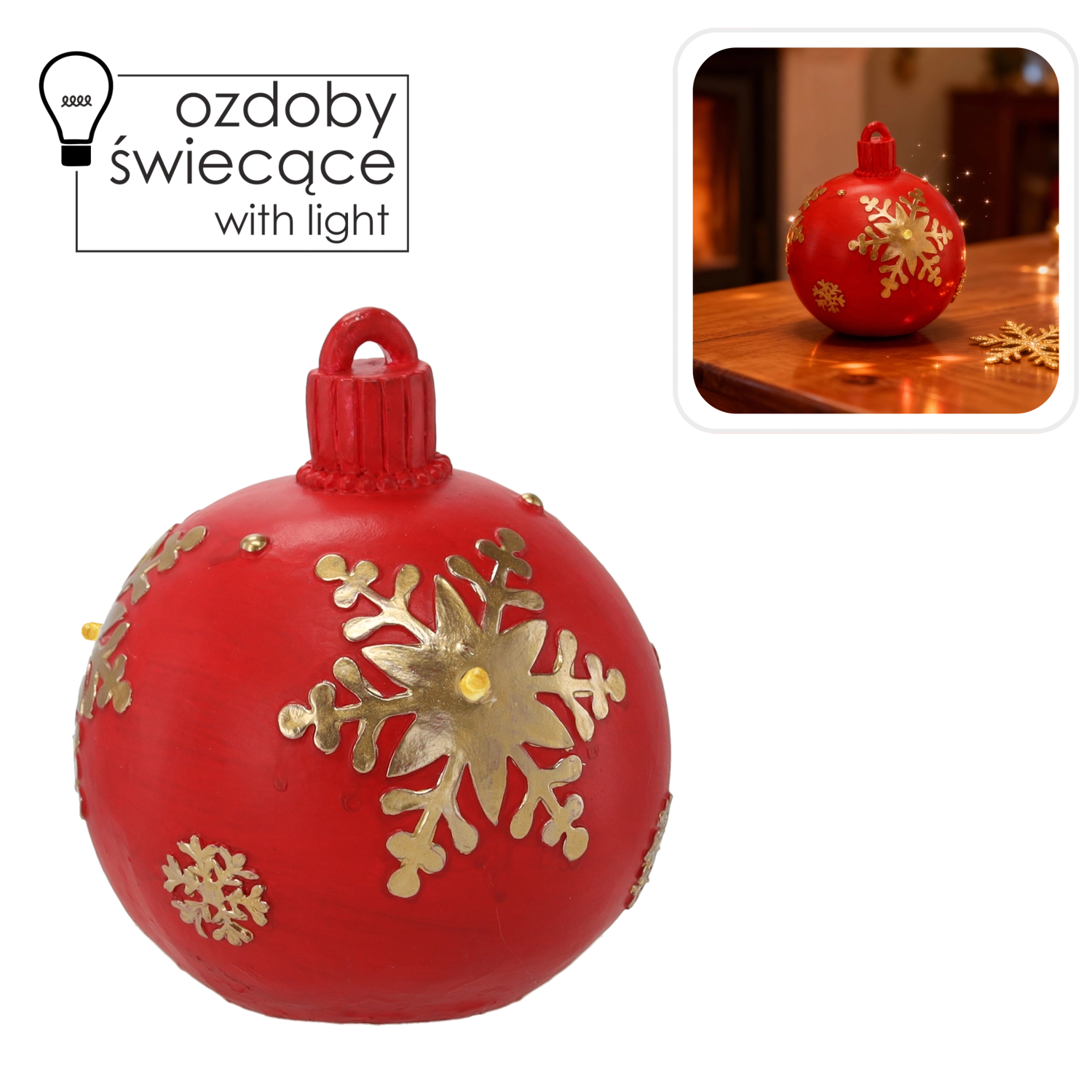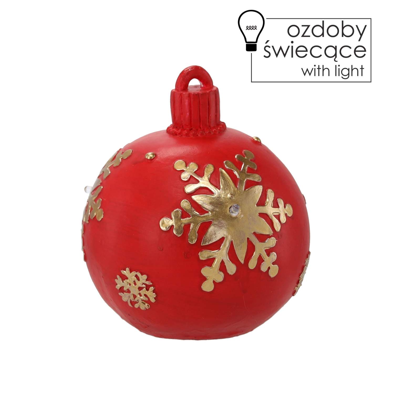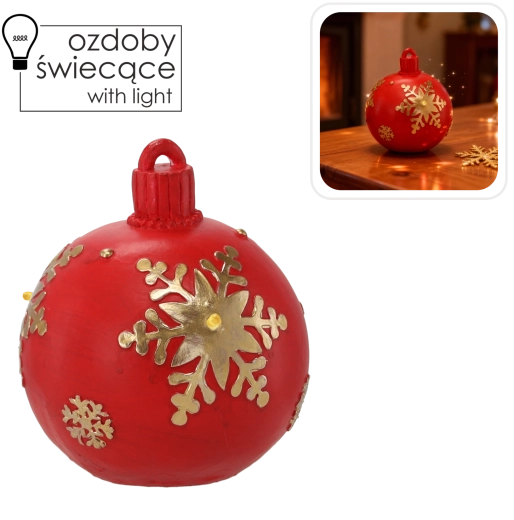 Stylowa ozdoba świąteczna, łącząca tradycyjny wygląd czerwonej bombki i delikatne oświetlenie LED. Błyszcząca powierzchnia, ciepła, świąteczna atmosfera oraz energooszczędne diody LED sprawiają, że to idealna dekoracja na choinkę i samodzielny dodatek do wnętrza.