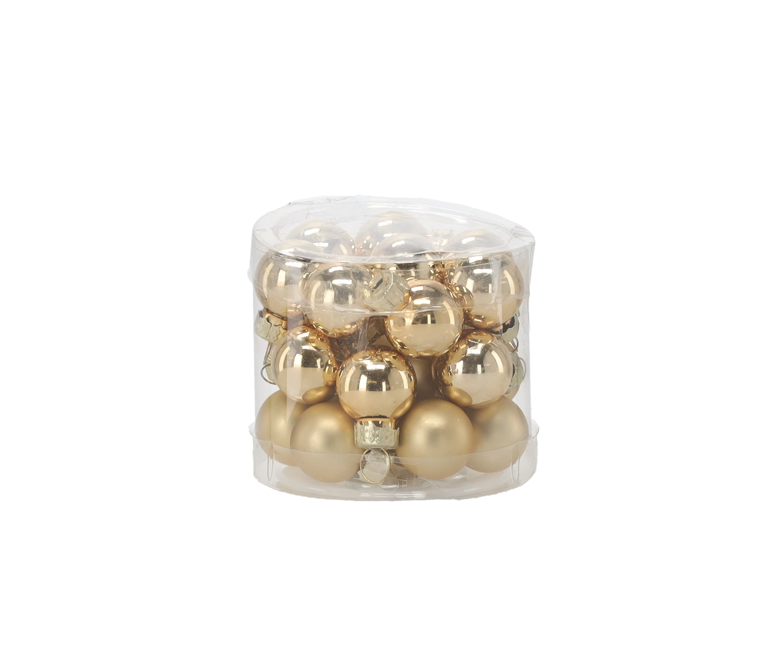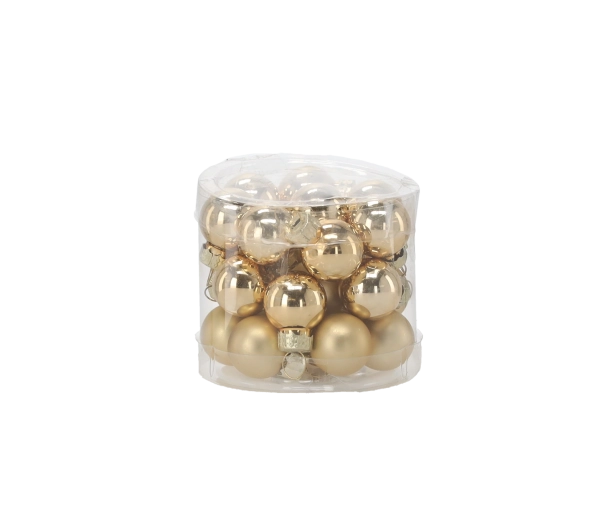 Dopracuj swoją świąteczną dekorację w każdym szczególe. Ten kompaktowy zestaw szklanych bombek o średnicy 2 cm łączy połyskujące i matowe wykończenia w harmonijnym miksie kolorów, które pięknie odbijają światło świątecznych lampek i nadają wnętrzu przytulną atmosferę.