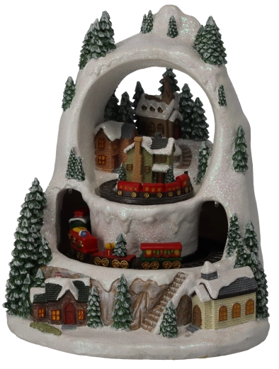 Dwie warstwowe tory tworzą imponujący efekt żywej zimowej wioski, która nieustannie ożywa ruchem.