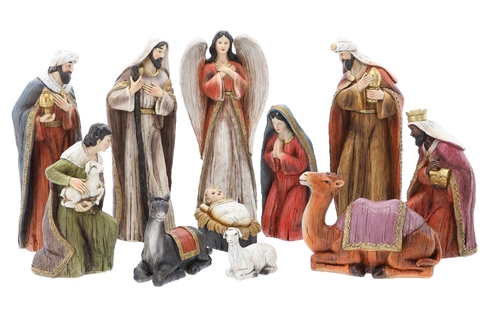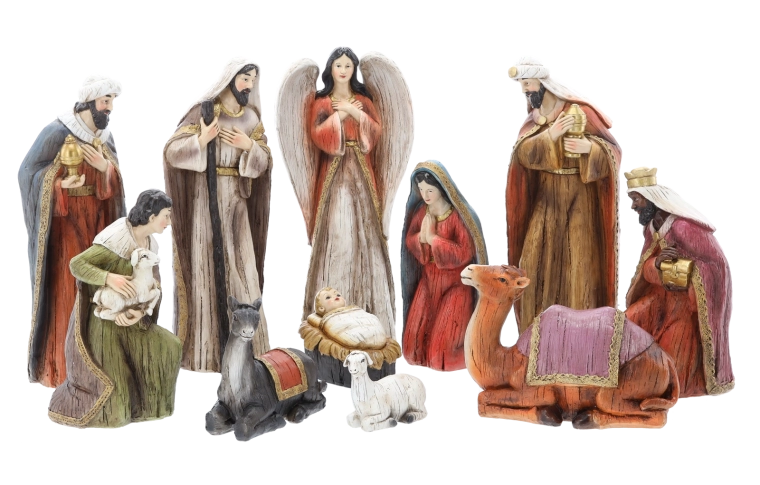 W zestawie znajdują się Święta Rodzina, Trzej Królowie, anioł, pasterz oraz zwierzęta (osioł, owca, wielbłąd). Dzięki temu z łatwością stworzysz efektowną świąteczną scenę.