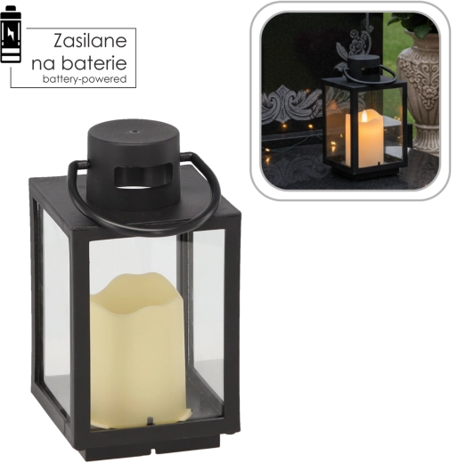 Latarnia idealnie nadaje się do użytku wewnątrz oraz w zadaszonych miejscach na zewnątrz. Praktyczne ucho umożliwia zawieszenie, a solidna konstrukcja gwarantuje trwałość i stabilność podczas ustawienia na stole lub parapecie.