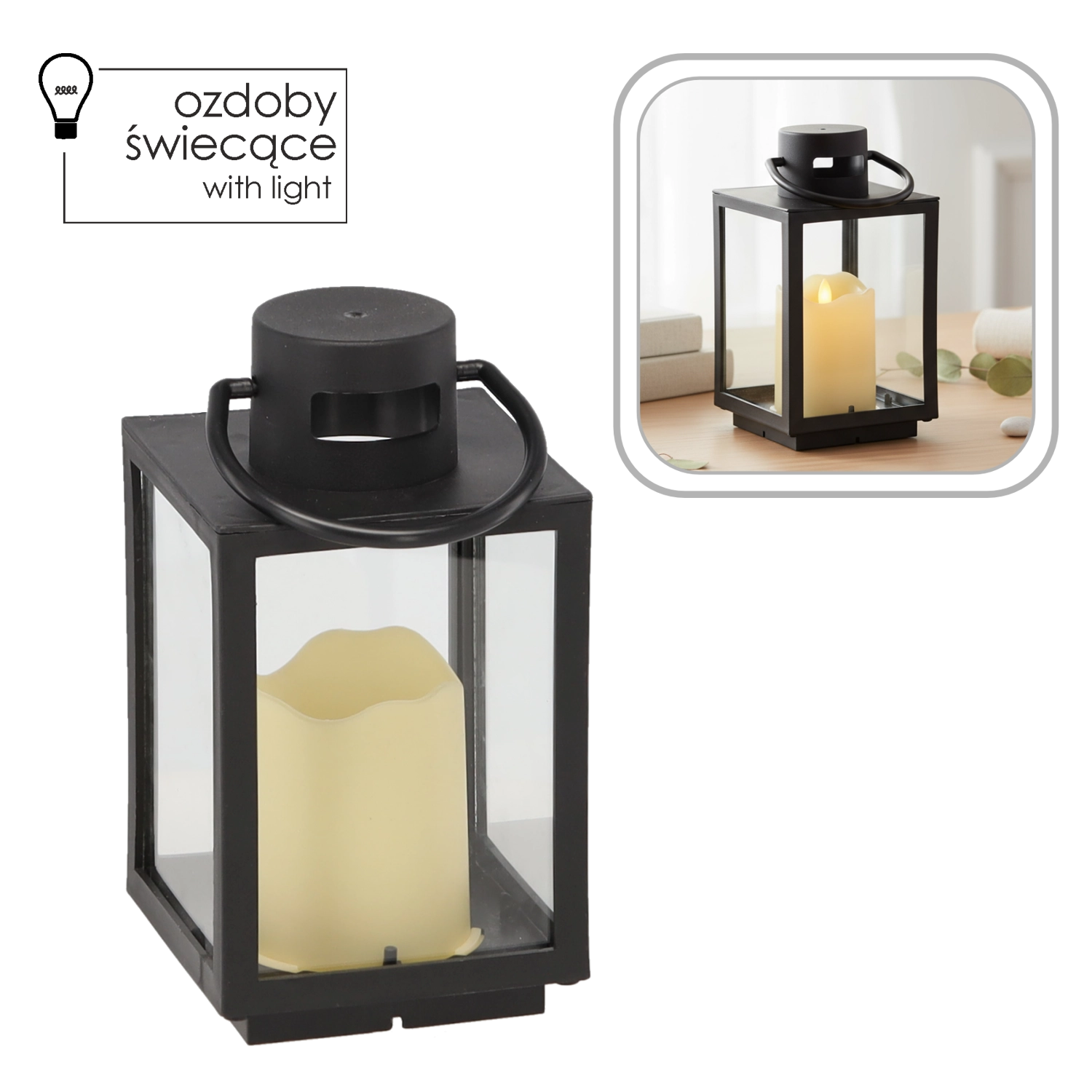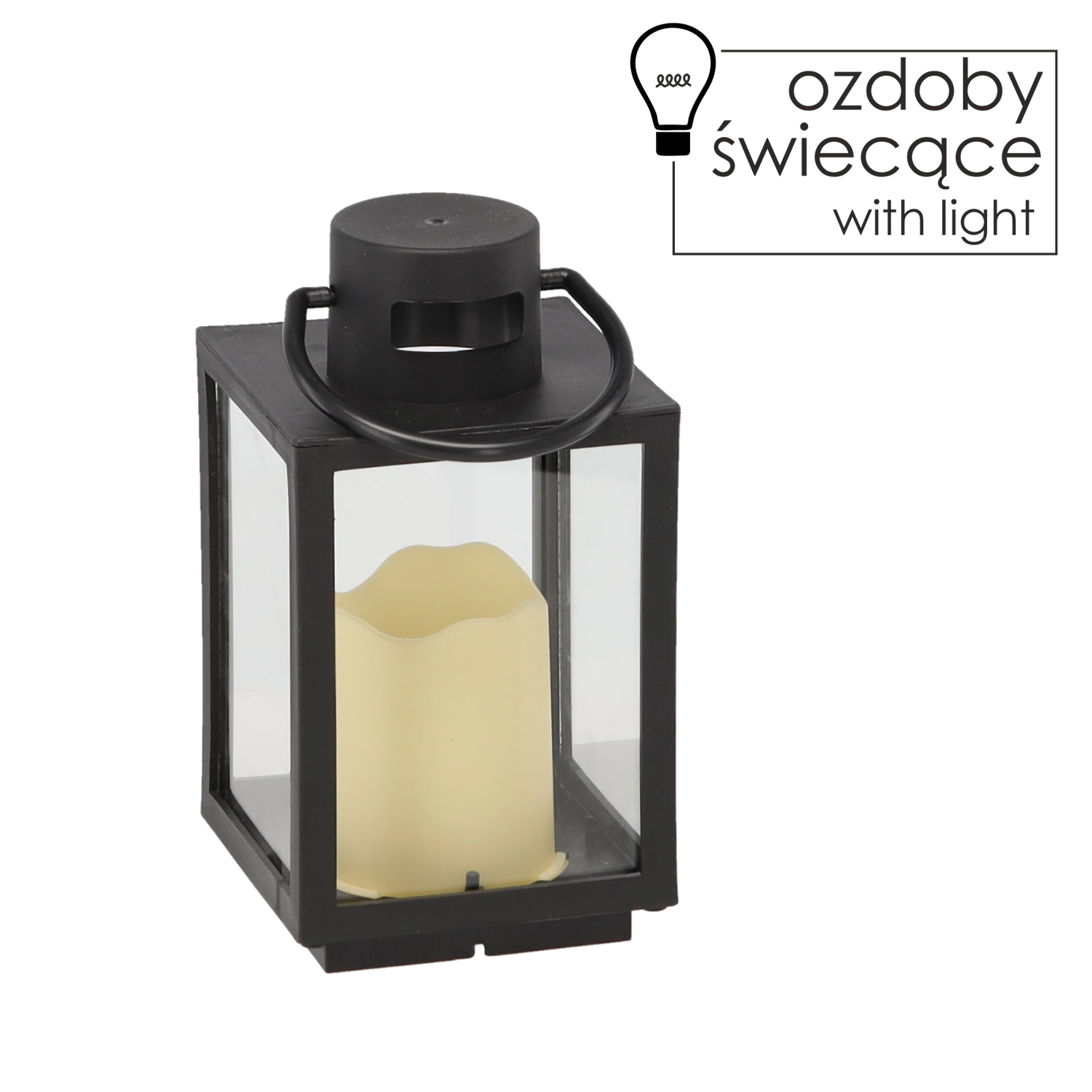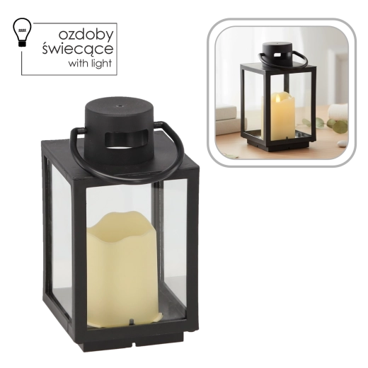 Ta stylowa świąteczna latarnia w czarnym, metalowym wykończeniu z przeźroczystymi szybami wnosi ciepłe i przyjemne światło, które pięknie dopełni świąteczne aranżacje i całoroczny wystrój. Wewnątrz umieszczono kremową świecę LED zapewniającą bezpieczne, oszczędne i bezobsługowe oświetlenie.