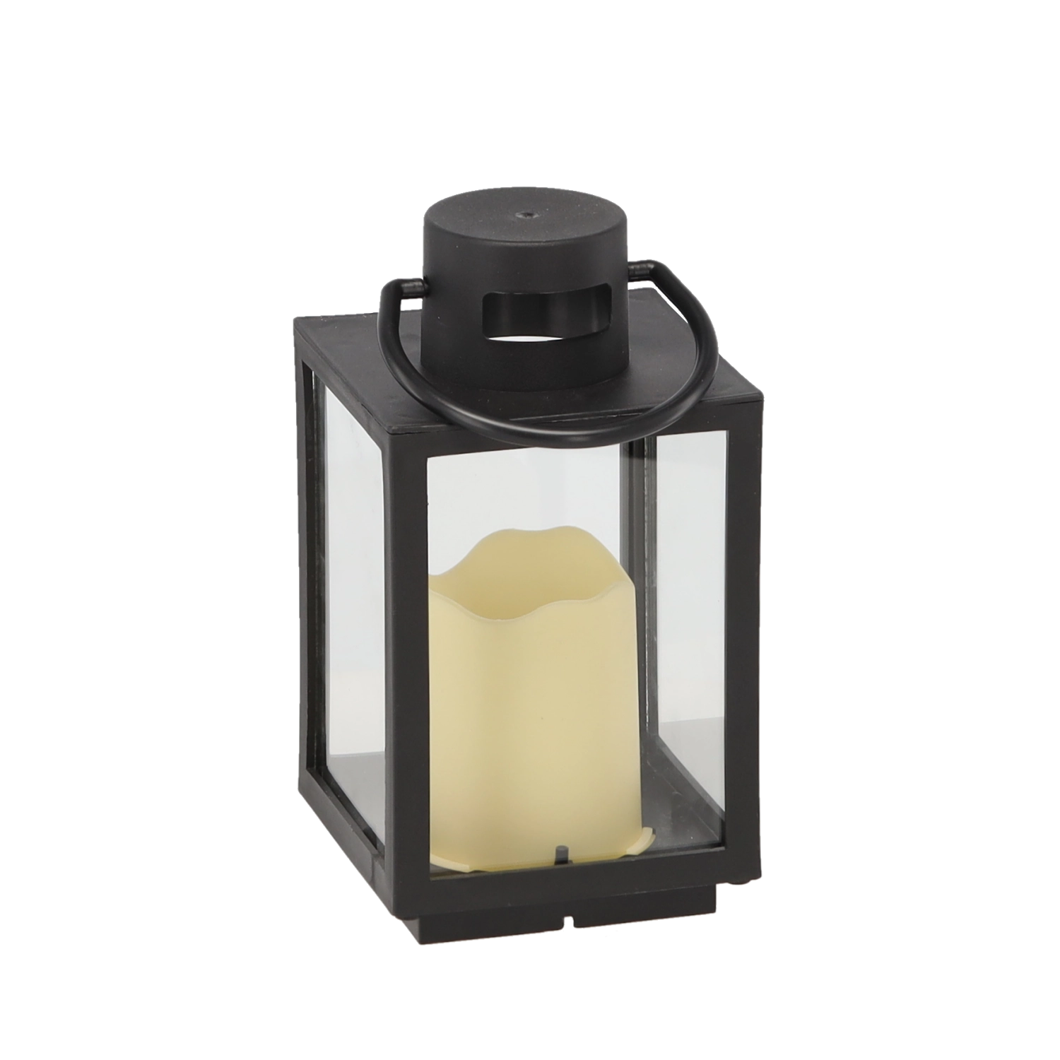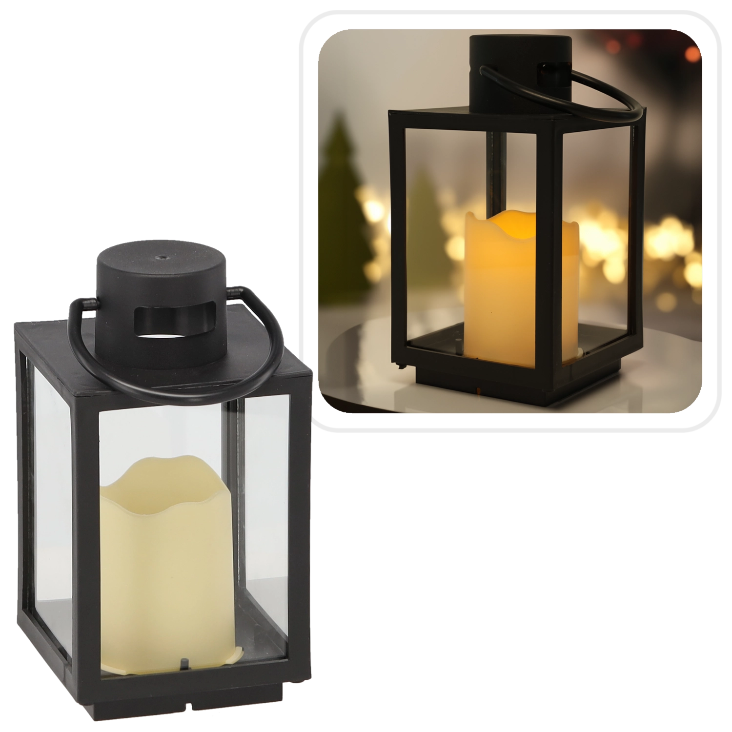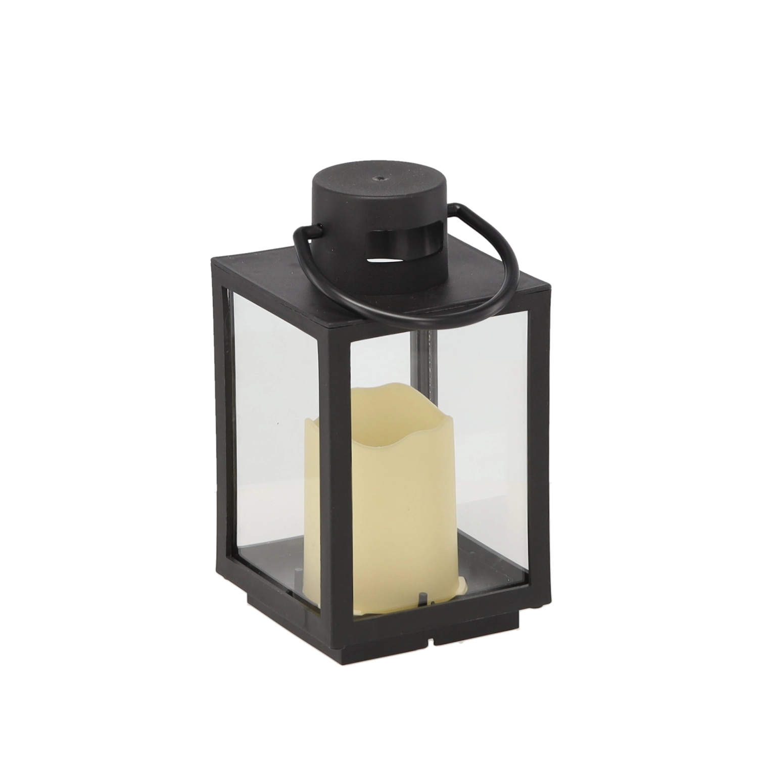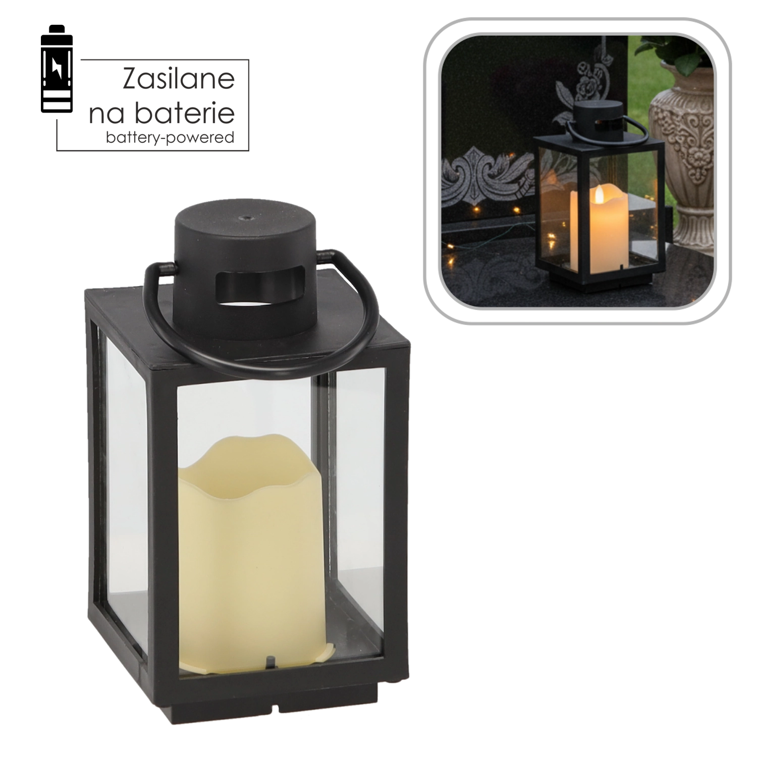 Czarna metalowa rama z przezroczystymi szybami podkreśla światło świecy i łatwo łączy się z nowoczesnym oraz tradycyjnym wystrojem.