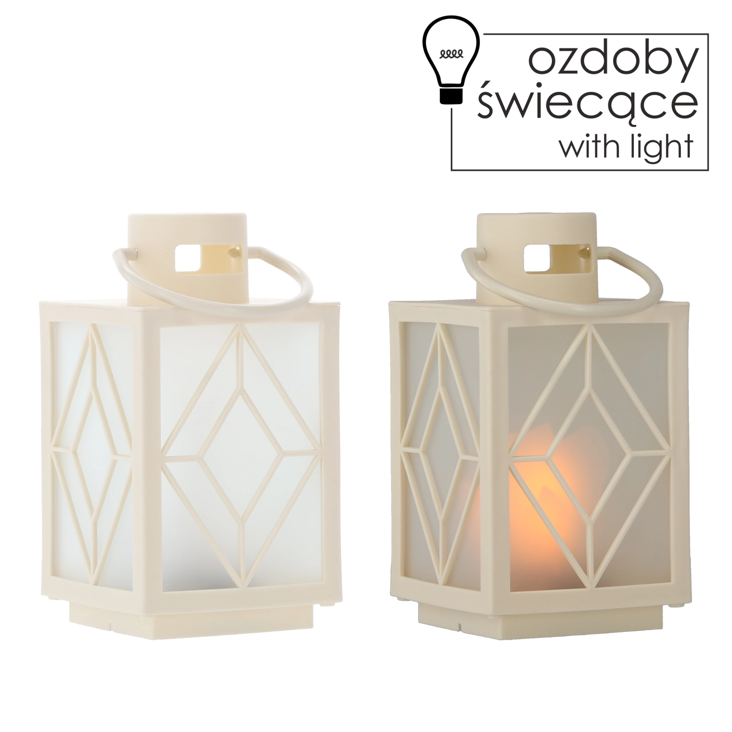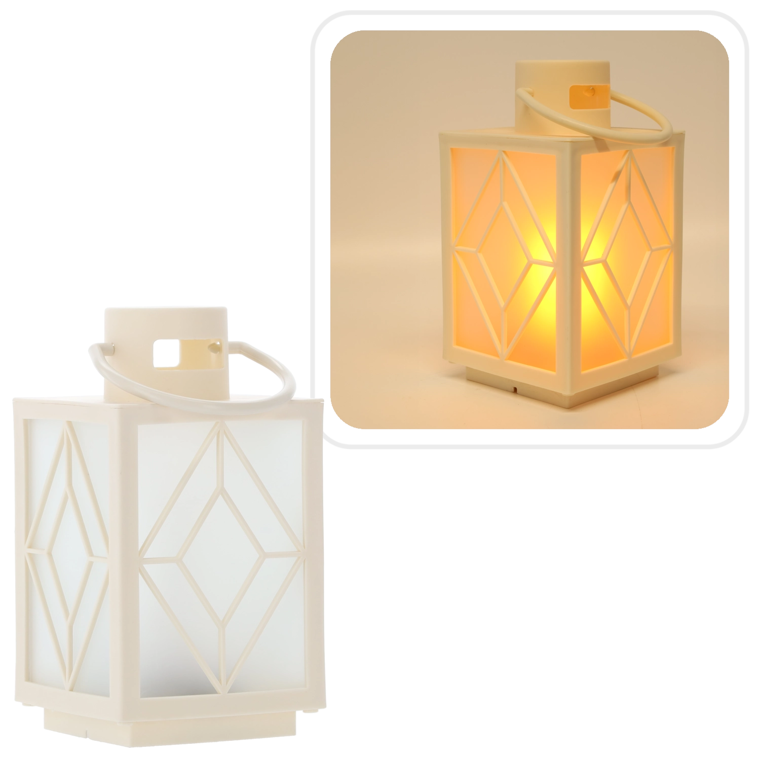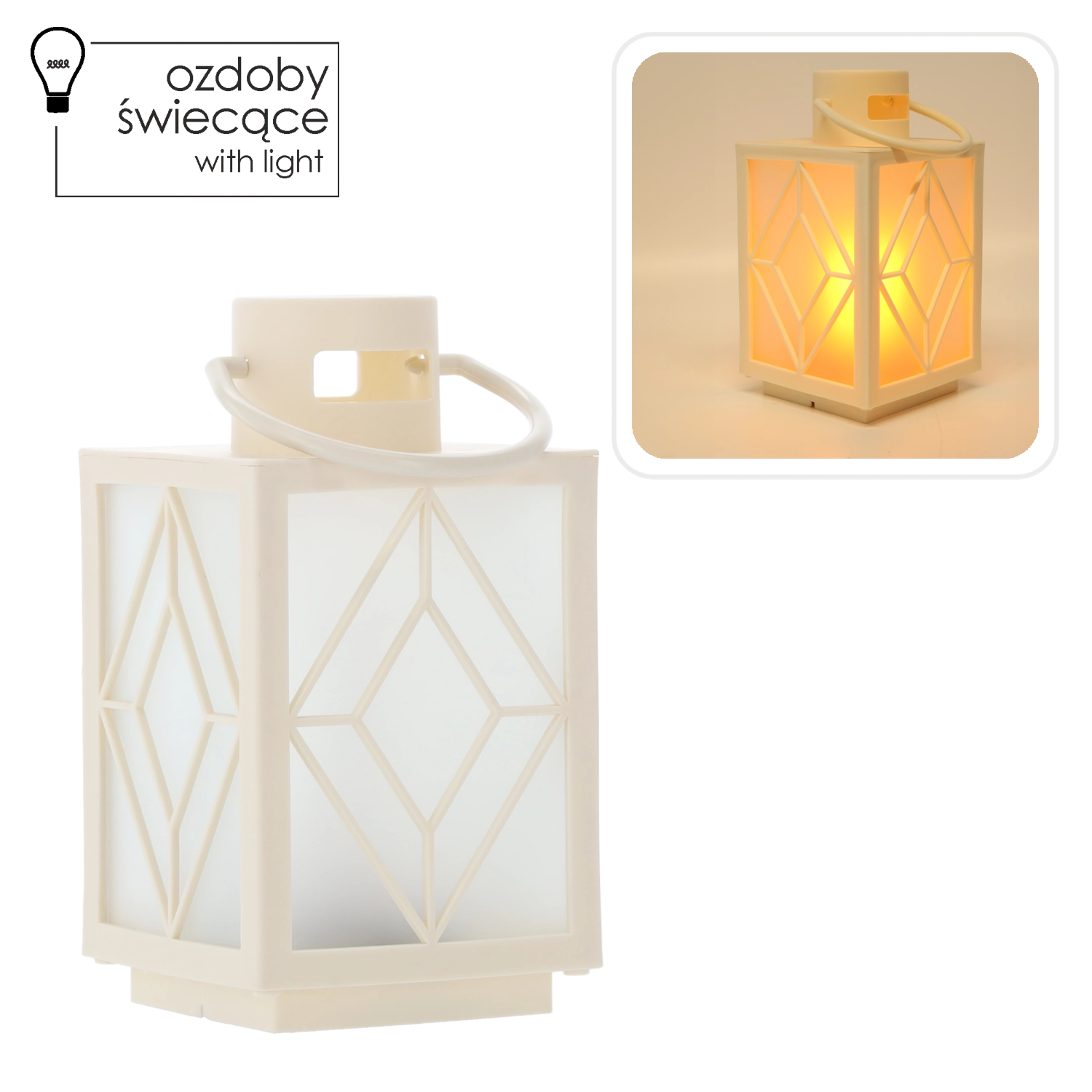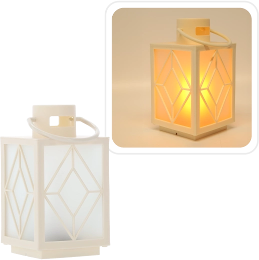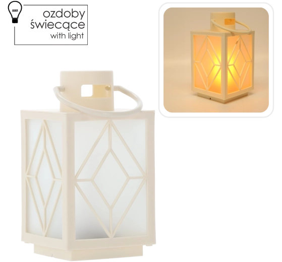 Ozdób swój dom subtelnym, ciepłym światłem. Biały dekoracyjny lampion z mrożonymi wypełnieniami i geometrycznym motywem zapewnia przyjemnie rozproszone oświetlenie przypominające świecę, lecz bez dymu i wosku. Idealny do adwentowej dekoracji, wieczornego relaksu lub odświętnej kolacji.