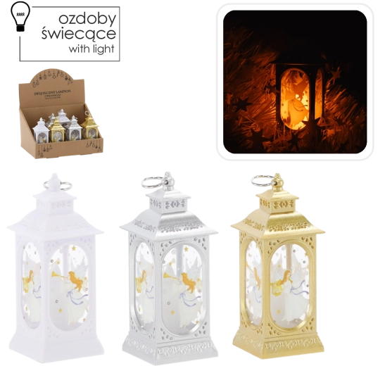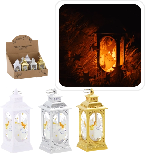 Elegancki bożonarodzeniowy lampion z motywem anioła rozświetli Twój dom ciepłym światłem. Kompaktowe wymiary i oszczędna dioda LED zapewniają długą żywotność, a stonowane wykończenie w srebrnym, złotym lub białym kolorze pasuje do każdego wnętrza. Zasilanie bezpieczną baterią CR2032 bez potrzeby użycia kabli.