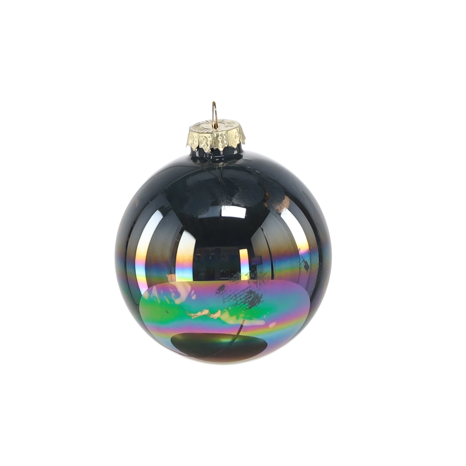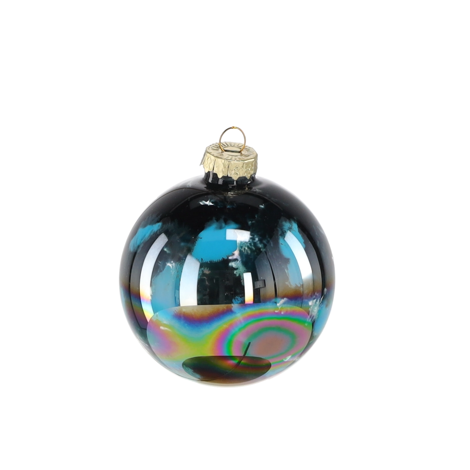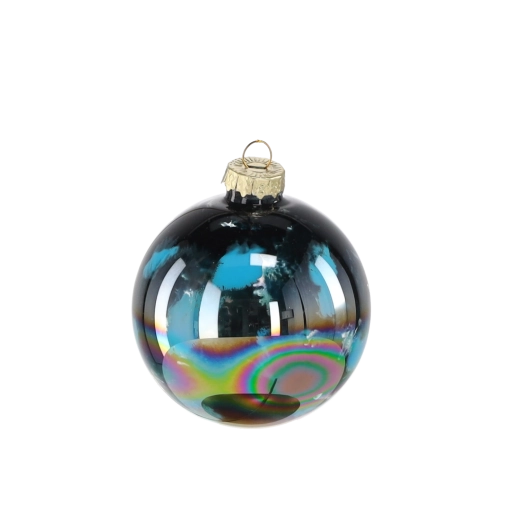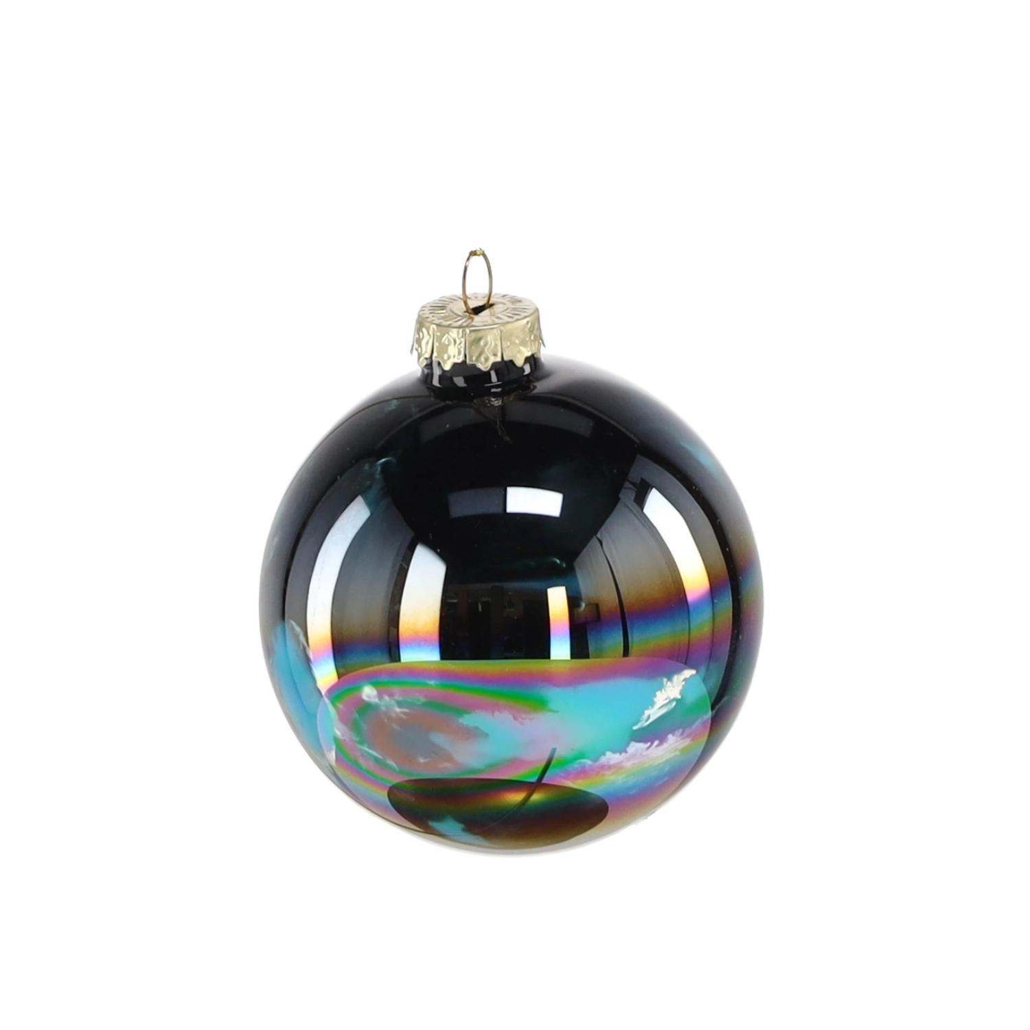 Te szklane ozdoby choinkowe wyróżniają się wysoką jakością wykonania i trwałością. Dzięki unikalnemu efektowi benzynowemu na powierzchni pojawiają się delikatne tęczowe przejścia, które podkreślają magiczną atmosferę Świąt i łatwo komponują się z innymi dekoracjami w stylu nowoczesnym i klasycznym.