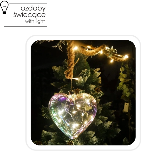 Wnieś do domu ciepłą i romantyczną atmosferę dzięki szklanej dekoracji w kształcie serca z efektem holograficznym i ciepłym białym światłem LED. Dzięki wymiarom 17 × 5,5 × 17 cm doskonale nadaje się na okno, ścianę lub drzwi. Jutowy sznurek dodaje rustykalnego uroku, a wbudowany timer 6/18 h zapewnia wygodną obsługę bez ręcznego włączania.