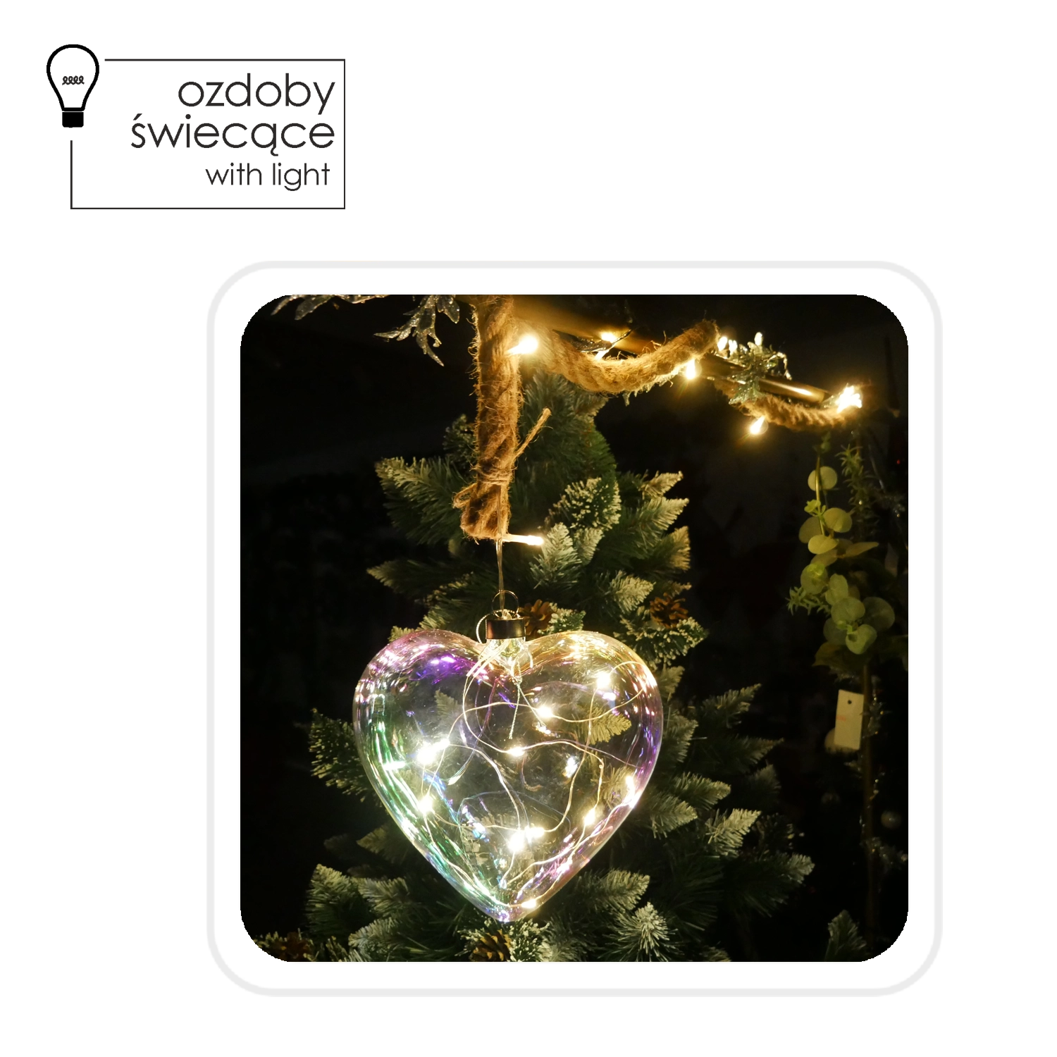 Ta elegancka szklana dekoracja w kształcie serca natychmiast tworzy przytulny klimat w każdym wnętrzu. Przezroczyste szkło z efektem holograficznym pięknie odbija światło, a w połączeniu z 10 diodami LED w ciepłej bieli rozświetla przestrzeń delikatnym, nastrojowym blaskiem.