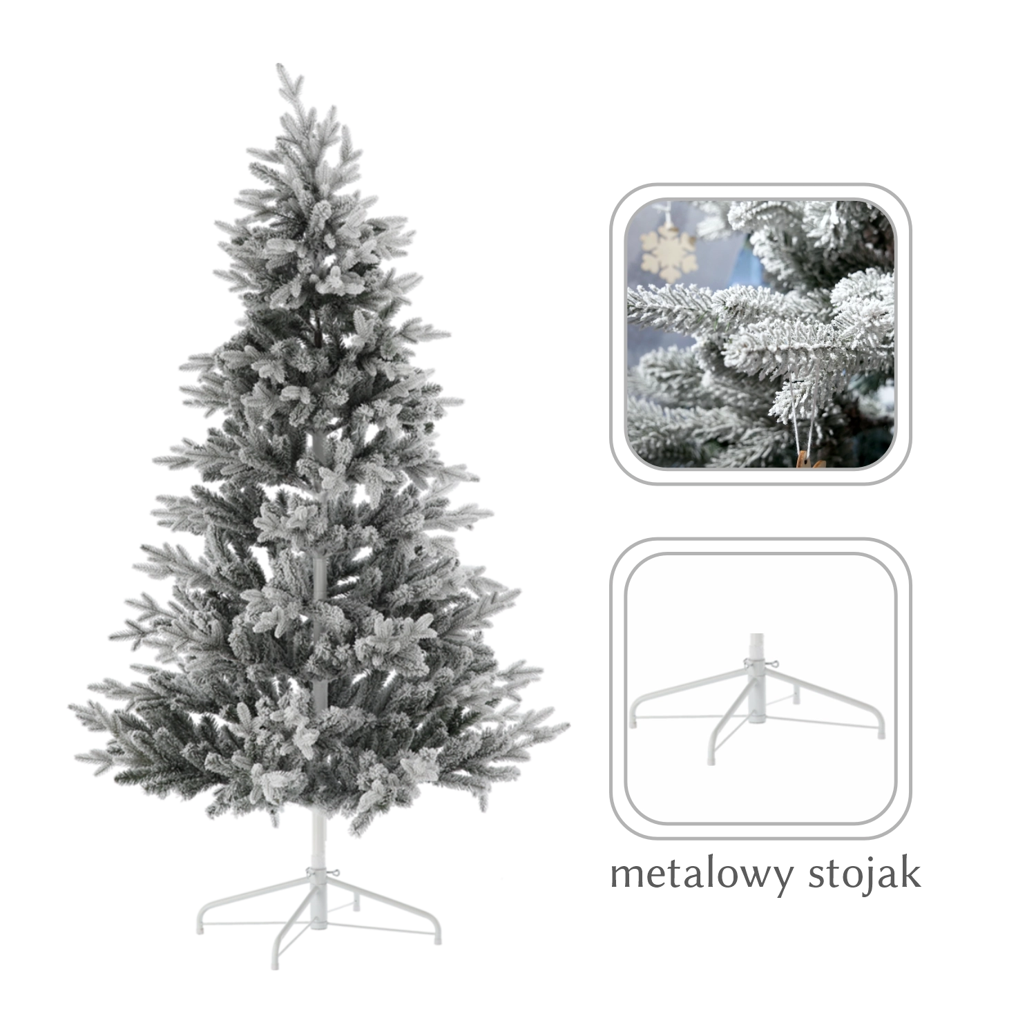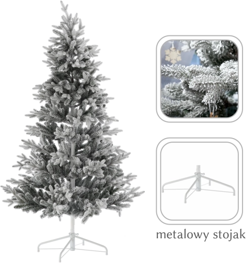 Drzewko wykonane jest z trwałego PVC, dzięki czemu zachowa swój kształt i kolor przez wiele sezonów. Metalowy stojak zapewnia solidną stabilność, a łatwy montaż oszczędzi Ci czas podczas przygotowań do Świąt. Dzięki wysokości 150 cm doskonale sprawdzi się w salonach, korytarzach i biurach.