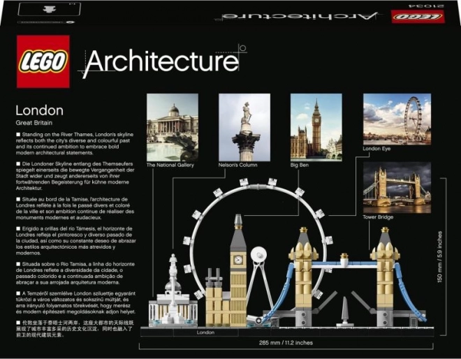 Zestaw z kolekcji LEGO Architecture Skyline wiernie odwzorowuje najsłynniejsze londyńskie zabytki w realistycznych proporcjach i kolorach. Na eleganckiej podstawce z ozdobną płytką „London” znajdziesz National Gallery, kolumnę Nelsona, London Eye, Big Ben (Elizabeth Tower) i most Tower Bridge. Przezroczyste elementy w podstawie ukazują nurt rzeki Tamizy, dzięki czemu model wygląda świetnie z każdego kąta.