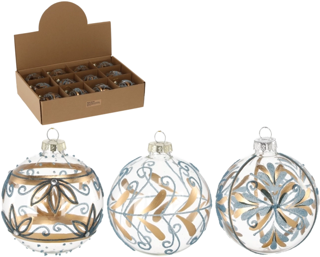 W opakowaniu znajduje się 12 sztuk z miksem wzorów, dzięki czemu na choince uzyskasz zrównoważoną i wizualnie atrakcyjną kompozycję. Wysokiej jakości szkło gwarantuje wytrzymałość i długą żywotność, a błyszcząca powierzchnia zapewnia świetlisty refleks w blasku lampek.
