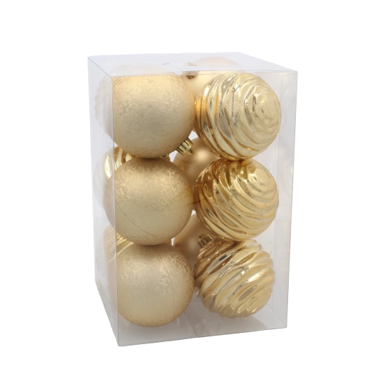 Ozdoby są idealne na choinkę, ale świetnie sprawdzą się też na wieńcach, girlandach i w dekoracjach stołowych. Połączenie matowych i błyszczących faktur dodaje aranżacji głębi i blasku, a jednolita średnica 8 cm zapewnia harmonijny wygląd całej dekoracji.