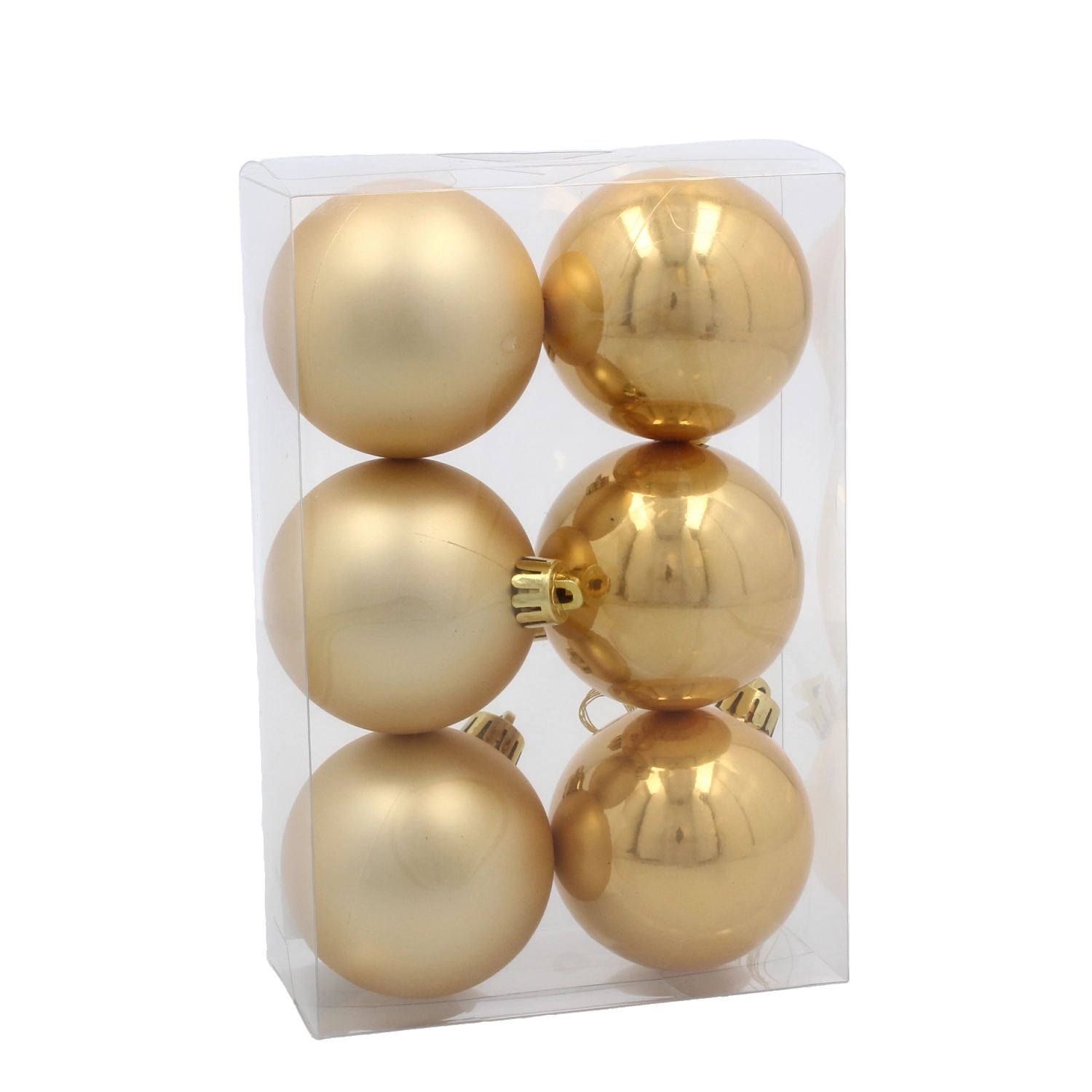 Z tym uniwersalnym zestawem świątecznych ozdób stworzysz spójne i reprezentacyjne dekoracje. Sześć bombek o średnicy 6 cm w ponadczasowych kolorach upiększy każde wnętrze, a dzięki wytrzymałemu, nietłukącemu wykonaniu nie musisz obawiać się użytkowania ani przechowywania.