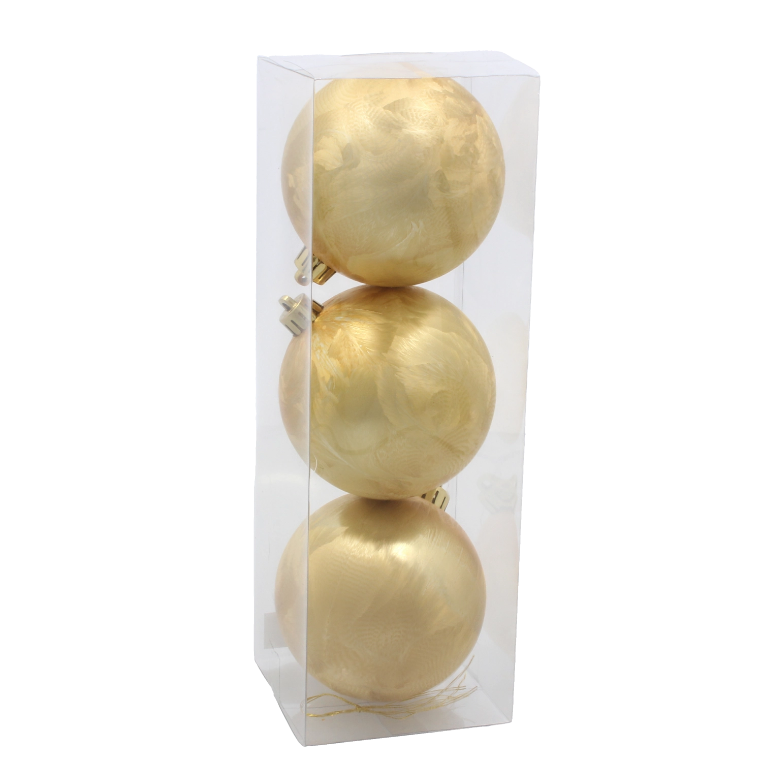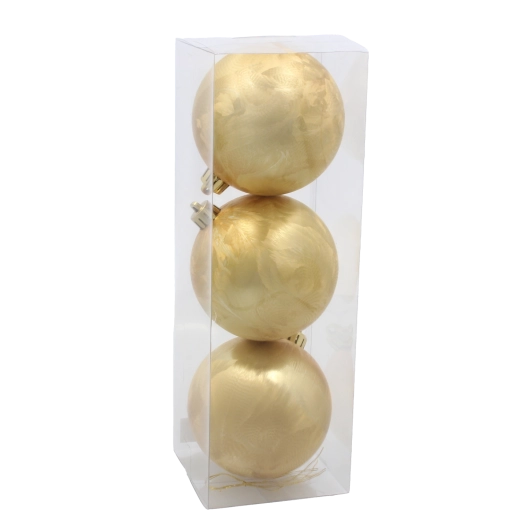 Każda bombka wyposażona jest w solidne, złote zawieszenie do szybkiego montażu na gałązkach lub haczykach. Opakowanie po 3 sztuki sprawdzi się idealnie jako zestaw uzupełniający do Twojej obecnej dekoracji albo jako podstawa nowej aranżacji.
