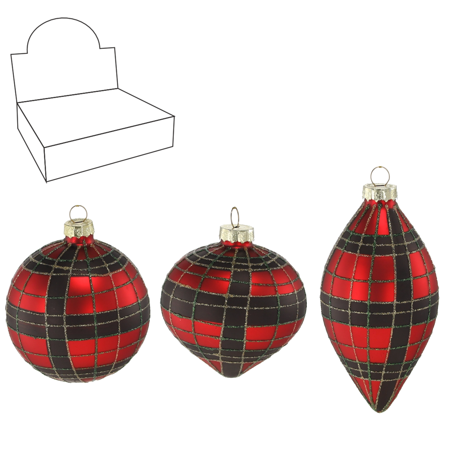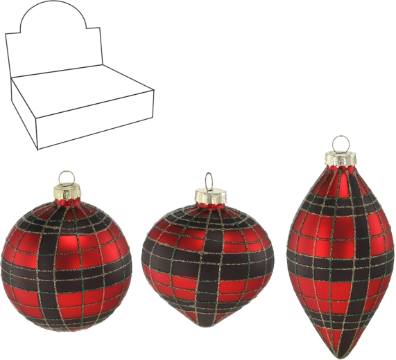 Eleganckie szklane ozdoby świąteczne w modnym połączeniu czerwieni i czerni dodadzą Twojej choince nuty luksusu. Zestaw oferuje mix wzorów z motywem kratki w kształcie okrągłym i podłużnym. Dzięki wysokiej jakości szkła i starannemu wykonaniu ozdoby pięknie się błyszczą i prezentują w każdym świetle. Idealne do spójnego dekorowania w stylu nowoczesnym i klasycznym – mix wzorów, szkło premium oraz ponadczasowy design.
