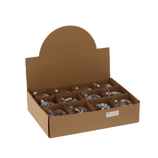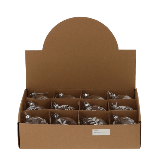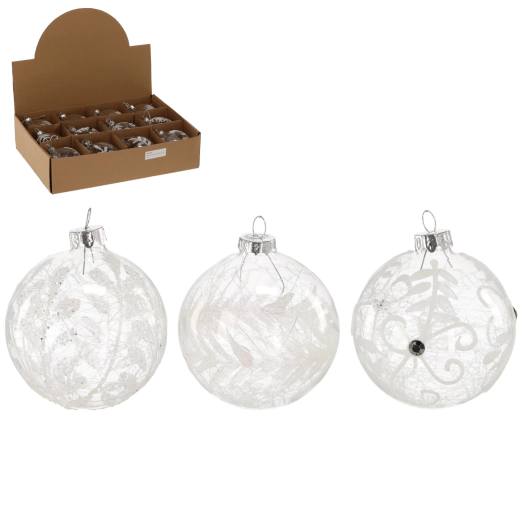 Elegancka szklana bombka choinkowa o średnicy 8 cm w transparentnym wykończeniu doda choince i wnętrzu ponadczasowego blasku oraz subtelnej elegancji. Dzięki miksowi wzorów łatwo łączy się z każdym stylem dekoracji, od klasycznej po nowoczesną. Wysokiej jakości szkło zapewnia długą żywotność i odporność na uszkodzenia, idealne do użytku wewnętrznego.