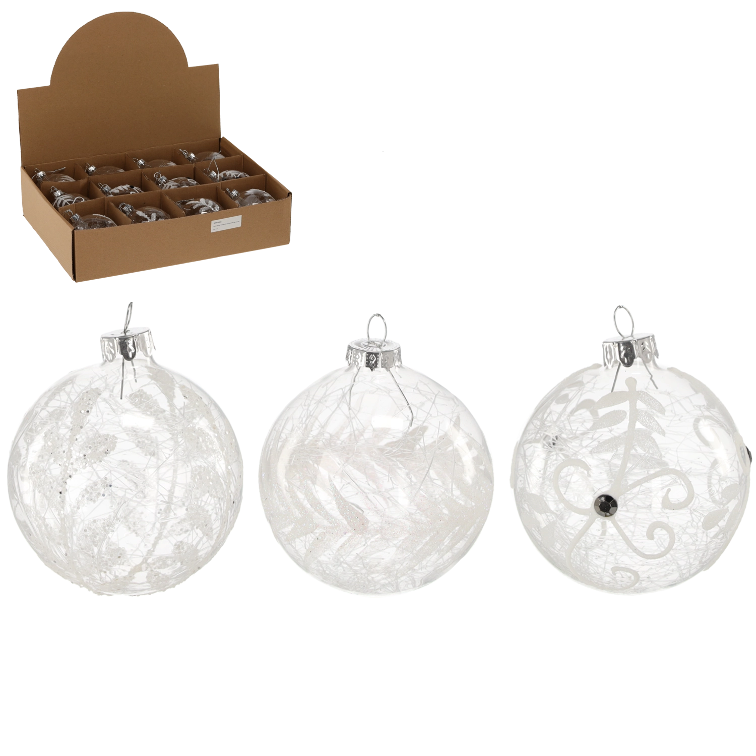 W opakowaniu znajdziesz 12 sztuk z mieszanką dekorów, dzięki czemu stworzysz harmonijną i urozmaiconą dekorację bez skomplikowanego dopasowywania. Ozdoby są lekkie i łatwe do zawieszenia – sprawdzą się na choince, w oknach, na gałązkach, a także w dekoracyjnych misach i świątecznych stroikach na stół.