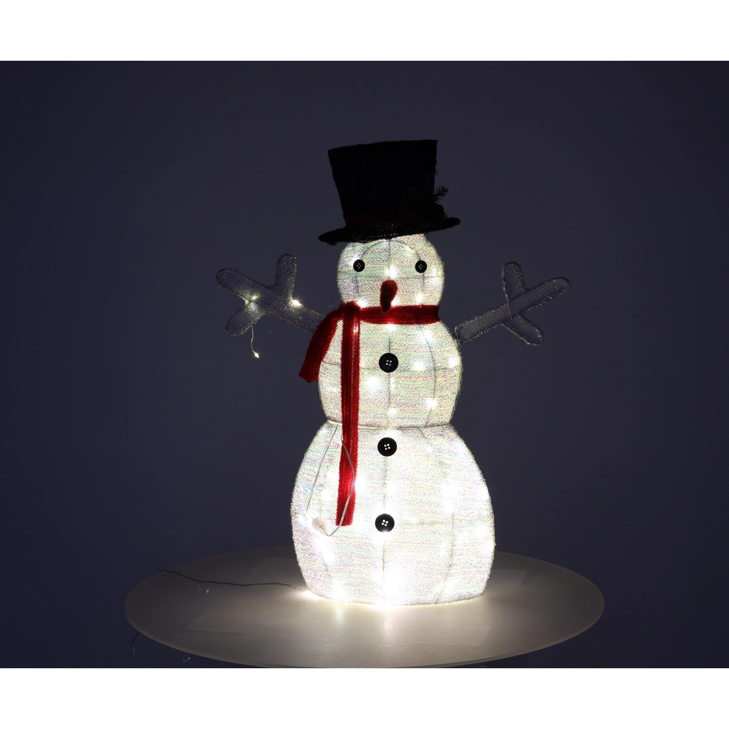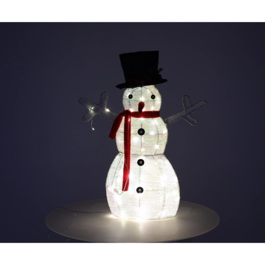 Uroczy bałwan LED o wysokości 72 cm rozświetli Twój dom przyjemnym białym światłem i stworzy przytulną, świąteczną atmosferę. Wystarczy podłączyć go do sieci i od razu cieszyć się zachwycającą zimową dekoracją do salonu, holu lub recepcji.