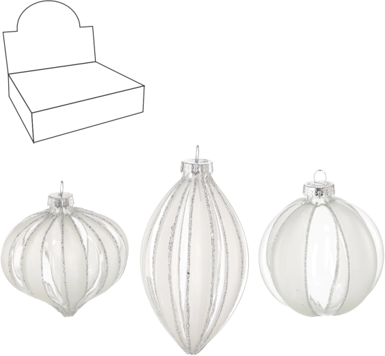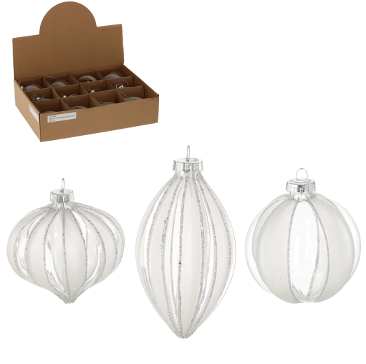 W zestawie znajdziesz mix różnych wzorów i kształtów – okrągłe bombki oraz podłużne krople. Dzięki neutralnej, przezroczystej barwie łatwo zestawisz je z dekoracjami tradycyjnymi i nowoczesnymi. Sprawdzą się na choince, w świątecznych aranżacjach i na eleganckich wiankach.