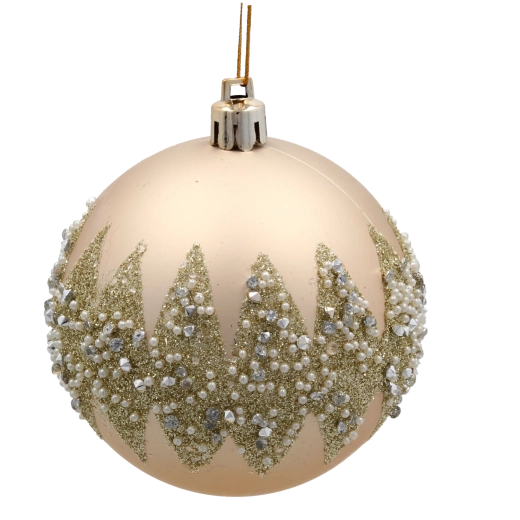 Kombinacja gładkich, błyszczących, brokatowych i fakturowanych bombek dodaje choince głębi i dynamiki bez potrzeby dodatkowego dekorowania.