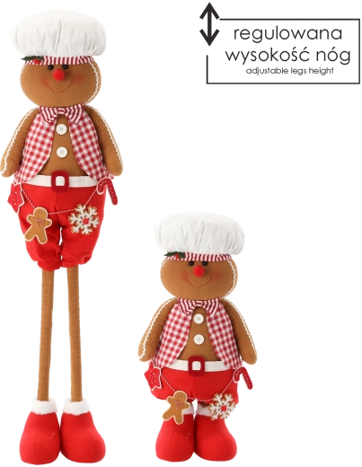 Urocza świąteczna dekoracja w formie piernikowego chłopca z teleskopowymi nogami wprowadzi do Twojego domu magię Świąt. Dzięki regulowanej wysokości łatwo dopasujesz ją do różnych przestrzeni, a stabilna konstrukcja i wysokiej jakości materiały zapewnią długą żywotność i piękny wygląd przy choince, na kominku czy na świątecznym stole.