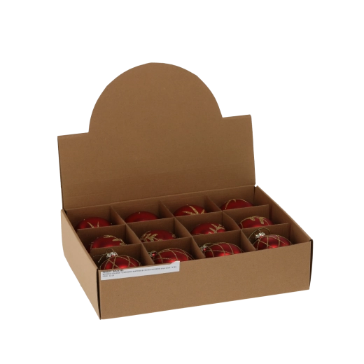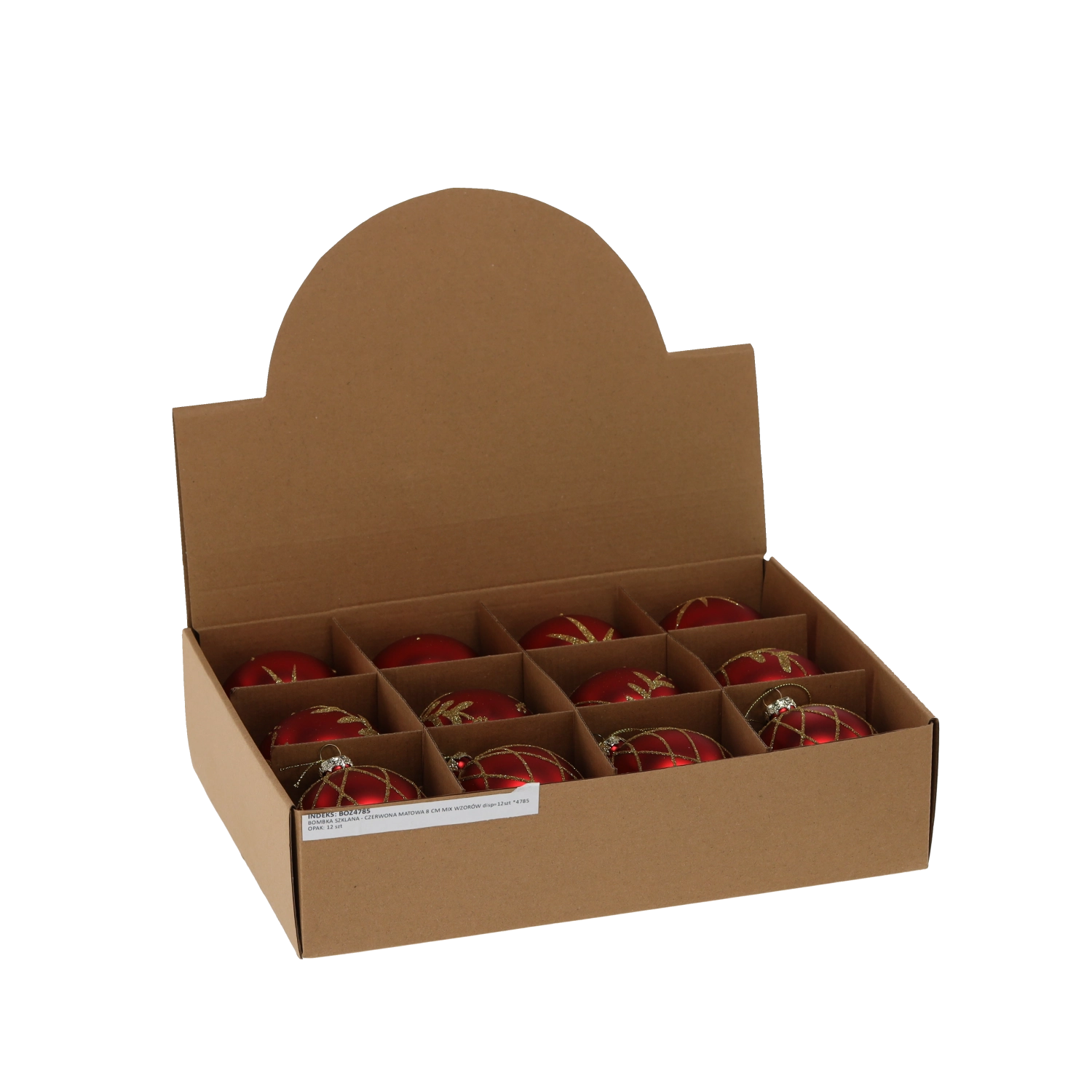 Dodaj swojej choince ponadczasowego szyku dzięki tej szklanej bombce o średnicy 8 cm w matowej czerwieni. Opakowanie zawiera mix eleganckich wzorów, które doskonale do siebie pasują i tworzą harmonijną, świąteczną aranżację. Wysokiej jakości szkło i precyzyjne wykonanie zapewniają długą żywotność oraz subtelne refleksy światła dla prawdziwie magicznej atmosfery.