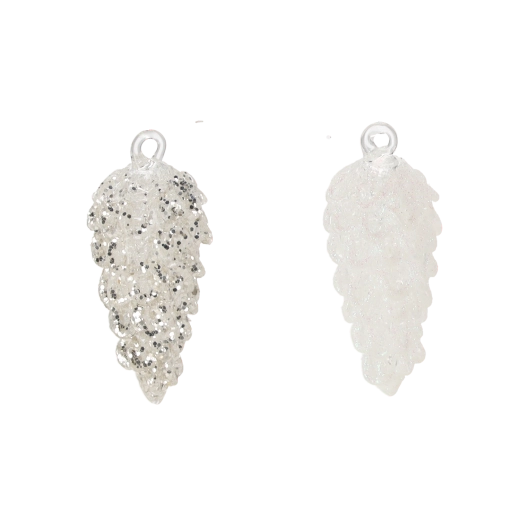 Dodaj swoim Świętom ponadczasowej elegancji. Szklane ozdoby w kształcie białej szyszki zachwycają dopracowanymi detalami i połyskującą powierzchnią, która pięknie odbija światło. Neutralna biel z różnorodnymi wzorami łatwo współgra zarówno z dekoracjami naturalnymi, jak i nowoczesnymi, podkreślając styl Twojej choinki.