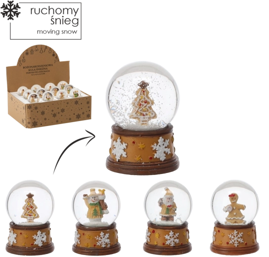 Ta świąteczna, magiczna dekoracja w postaci kuli śnieżnej wprowadza do domu ciepłą, odświętną atmosferę. Każda kula skrywa szczegółowo wykonaną figurkę, a po potrząśnięciu tworzy efekt delikatnego śnieżenia. Dzięki uniwersalnemu wzornictwu pasuje zarówno do pokoju dziecięcego, jak i eleganckiego wnętrza.