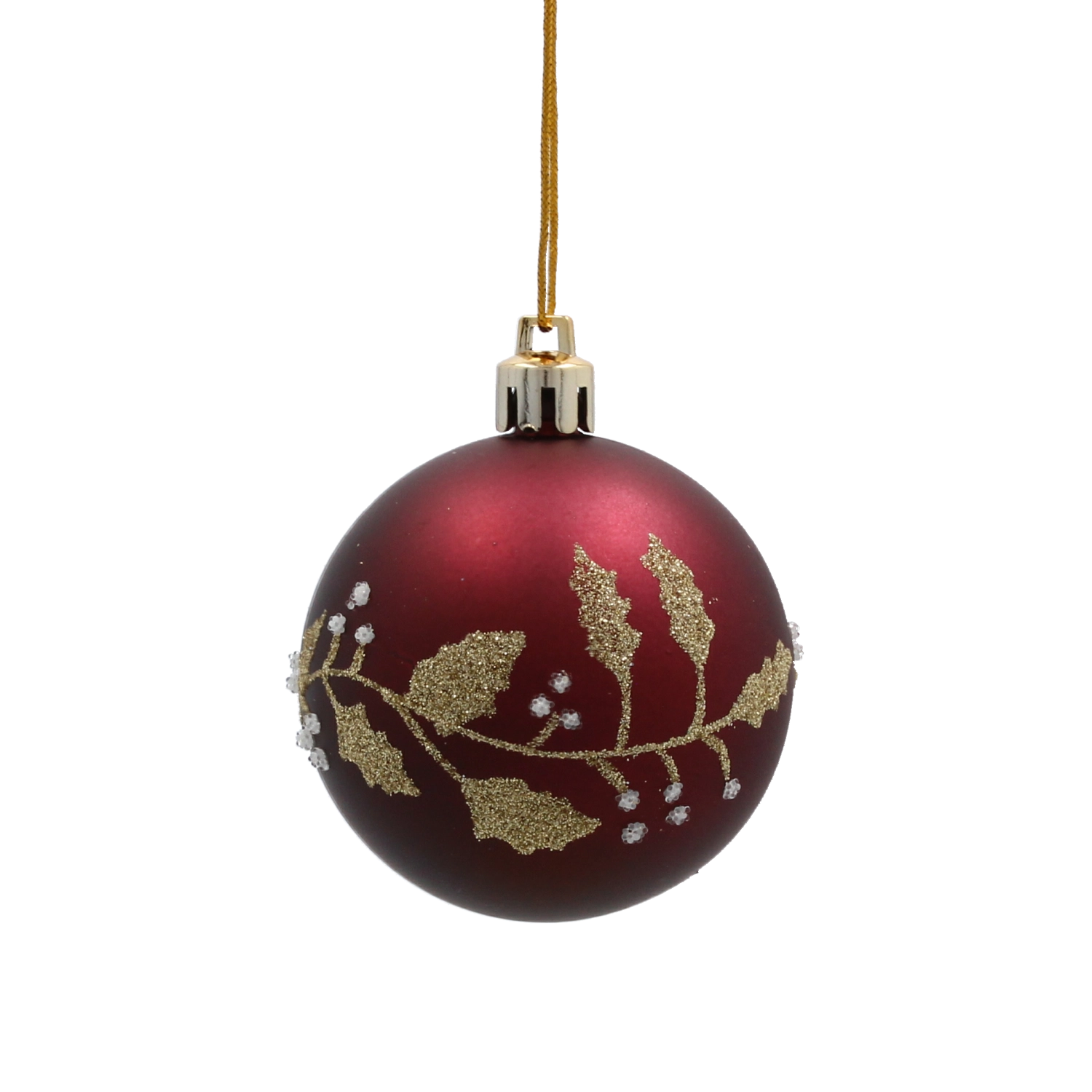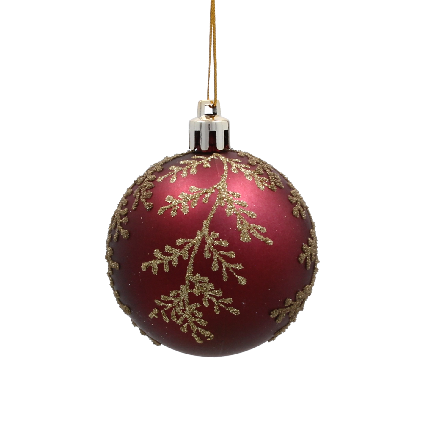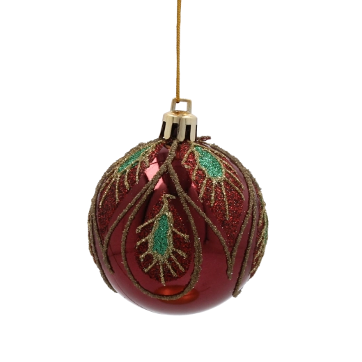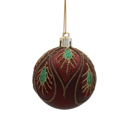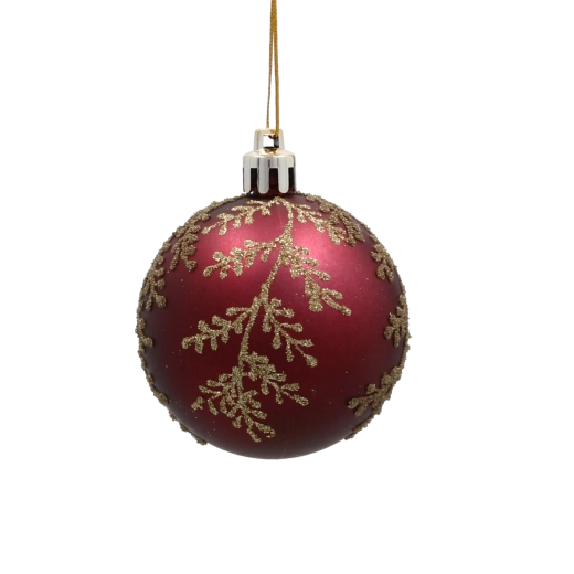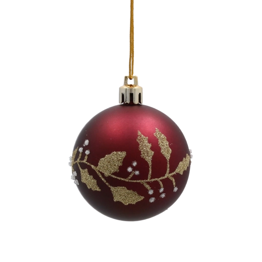 Nasycony bordowy odcień z wyrafinowanym złotym roślinnym wzorem nadaje dekoracji głębi, ciepła i świątecznego blasku.