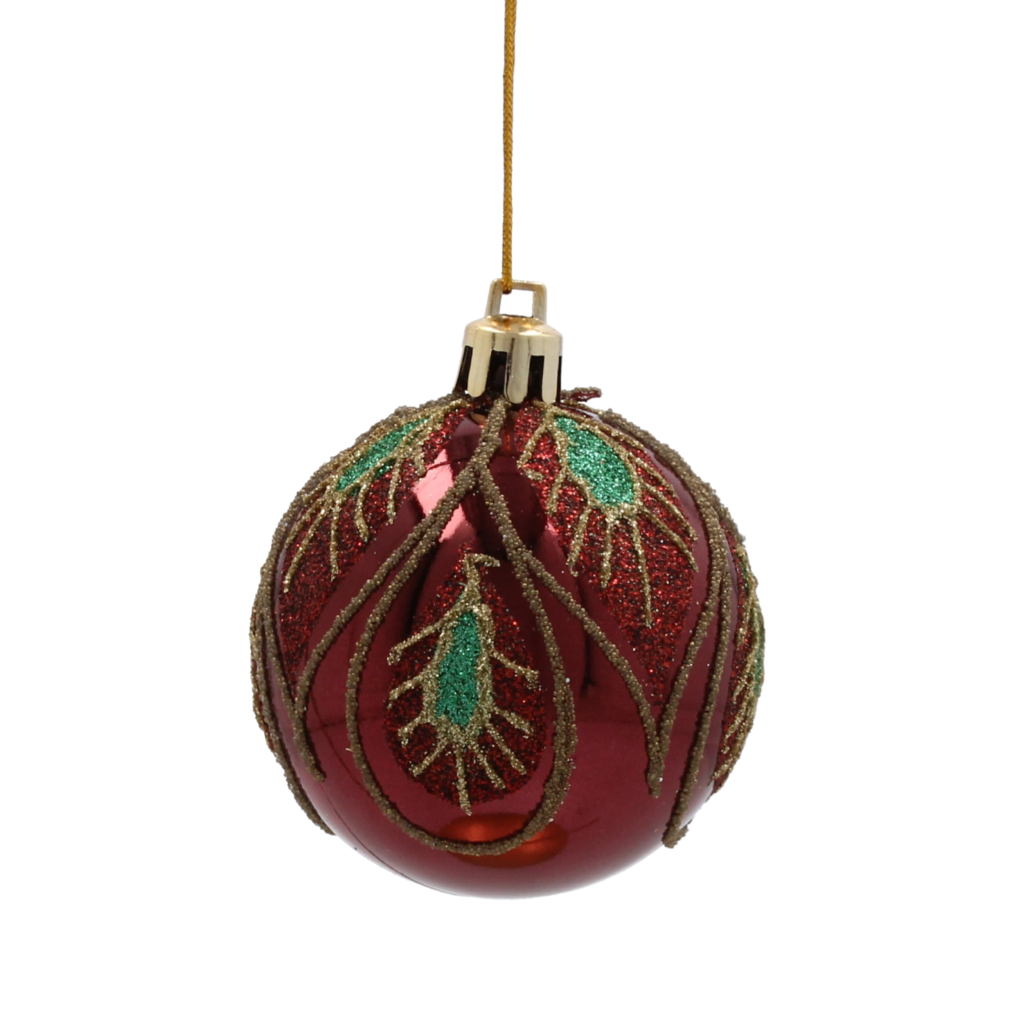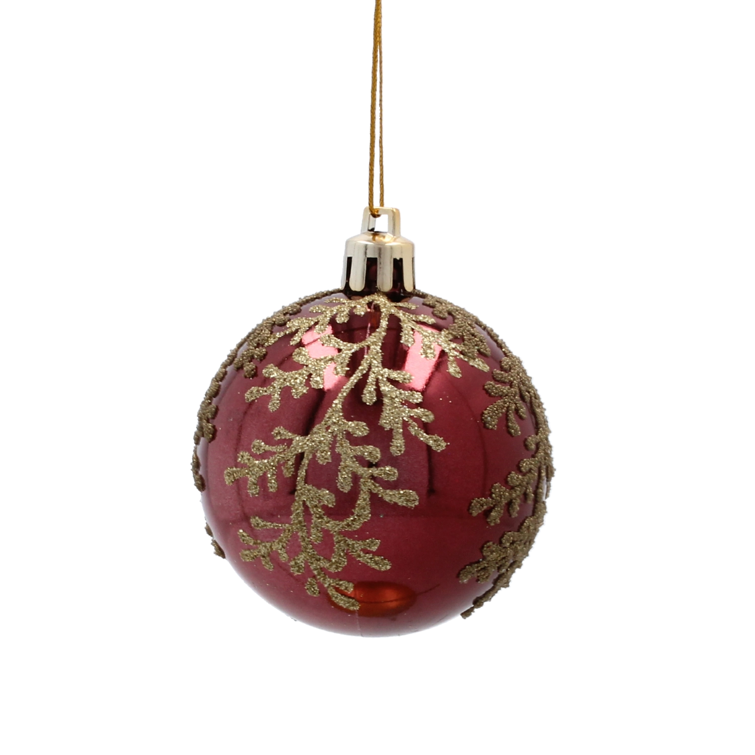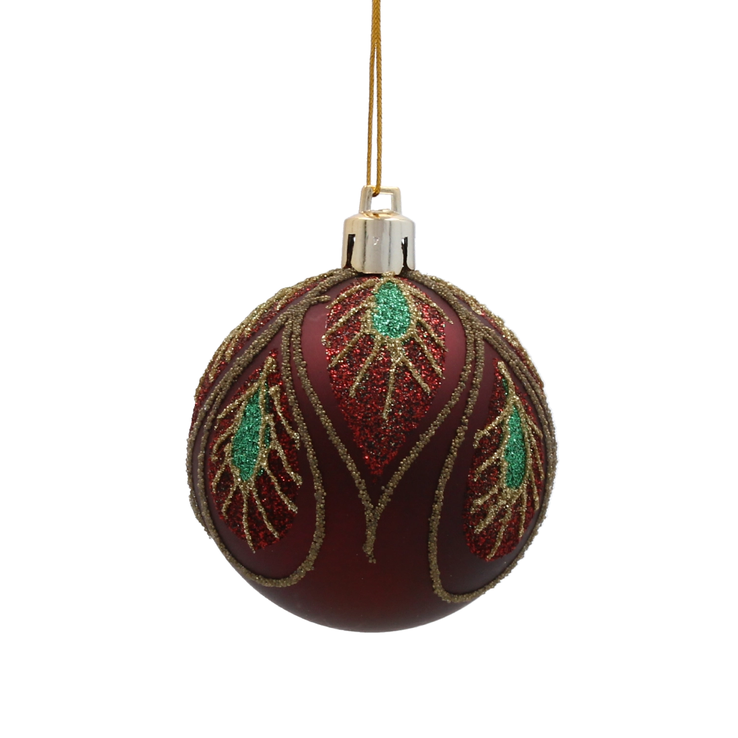 Nasycony bordowy odcień z wyrafinowanym złotym roślinnym wzorem nadaje dekoracji głębi, ciepła i świątecznego blasku.