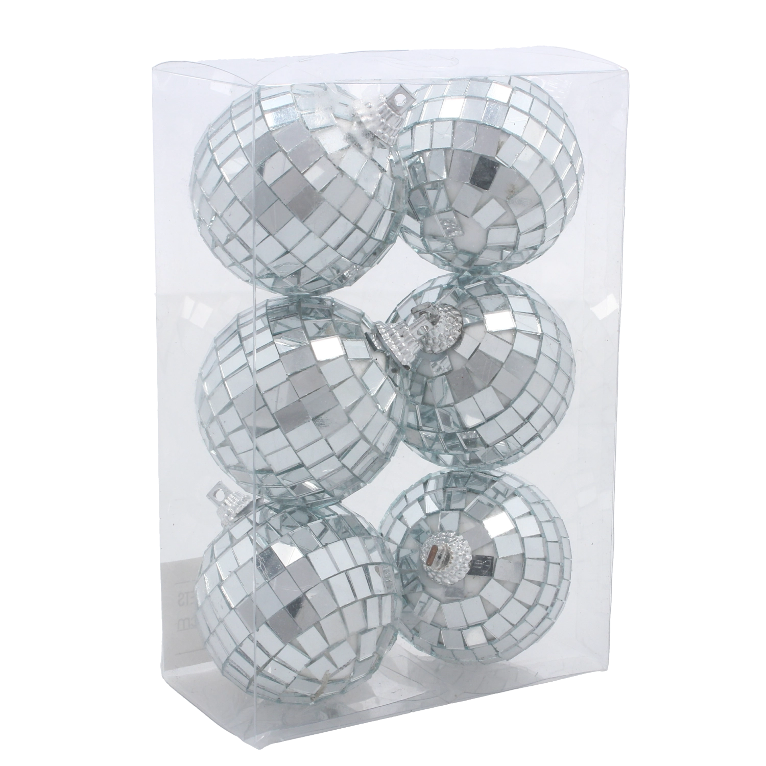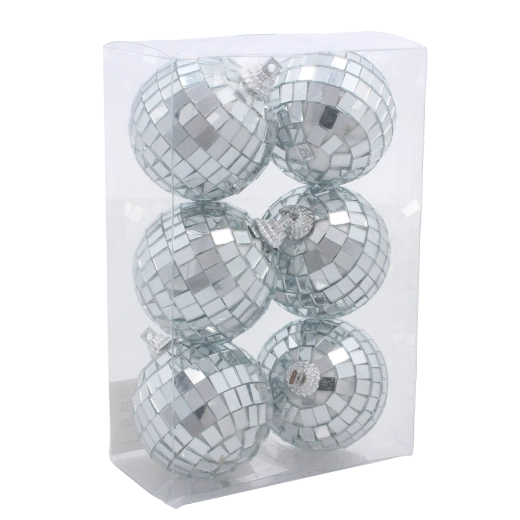 Dodaj swoim uroczystościom i wnętrzu olśniewający akcent dzięki zestawowi sześciu lustrzanych bombek o średnicy 5 cm. Dzięki uniwersalnemu designowi świetnie sprawdzą się na choince, na weselach, urodzinach oraz na sylwestrowych czy karnawałowych przyjęciach. Błyszcząca srebrna powierzchnia elegancko odbija światło, praktyczne zawieszki ułatwiają montaż, a wysoka jakość wykonania gwarantuje długą trwałość.
