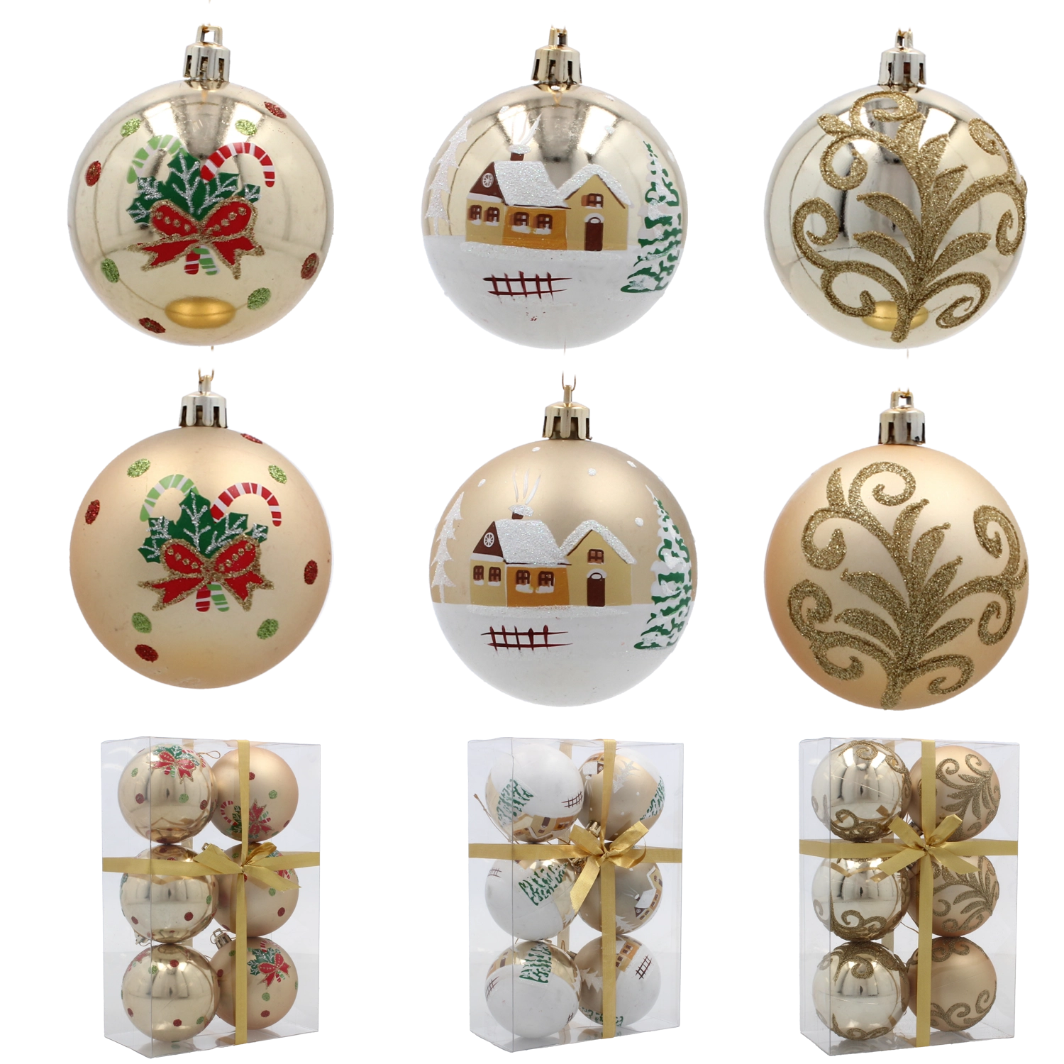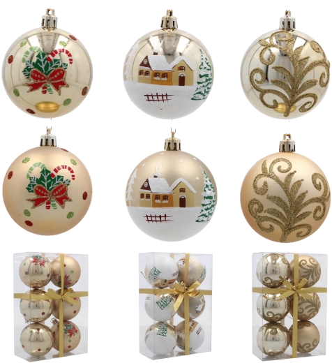 Wzbogać swoje świąteczne dekoracje stylowym zestawem złotych bombek, które dzięki różnorodnym wzorom i wykończeniom prezentują się luksusowo, a jednocześnie pozostają uniwersalne. Lekka konstrukcja z nietłukącego tworzywa zapewnia łatwe zawieszanie bez obciążania gałązek oraz długą żywotność nawet przy częstym użytkowaniu.