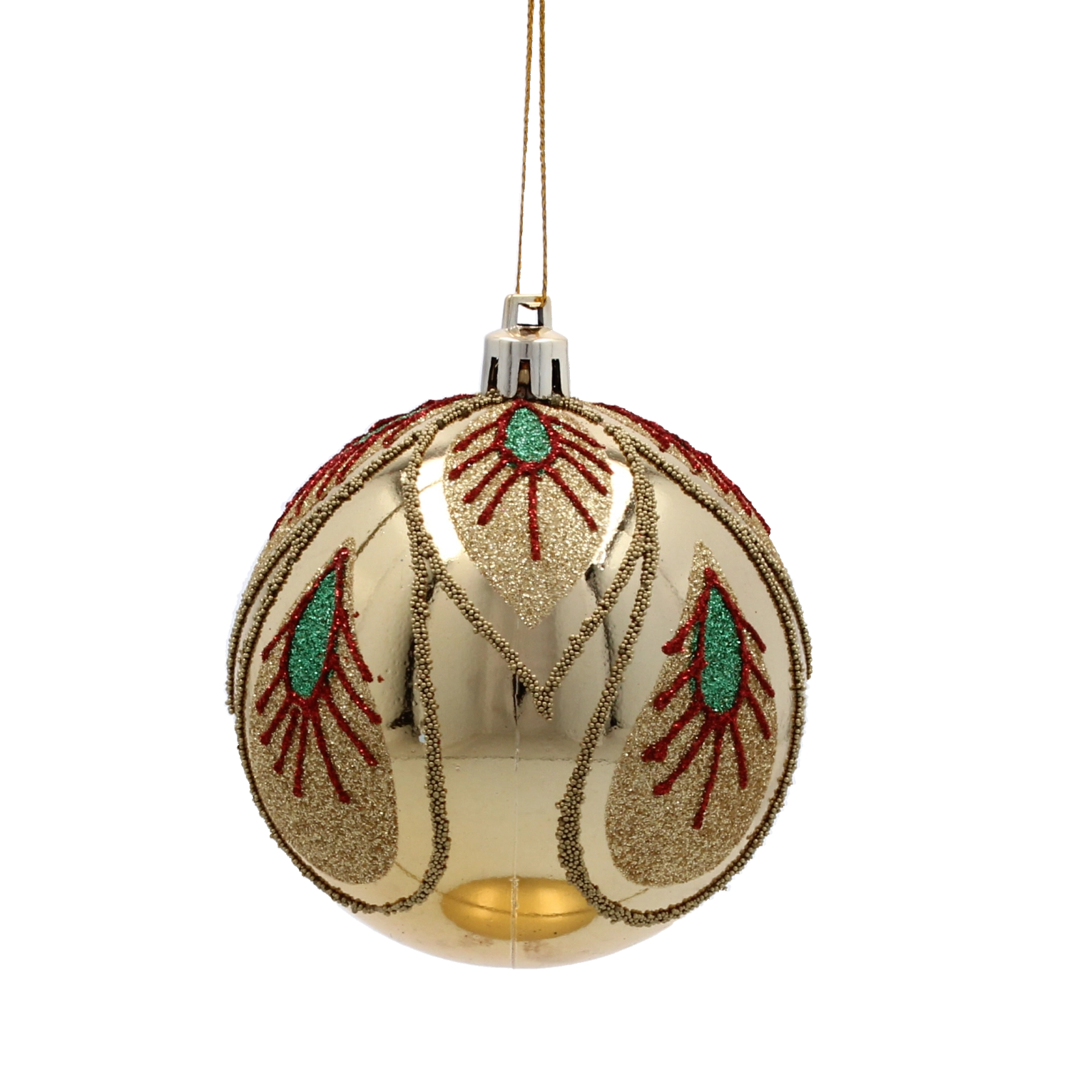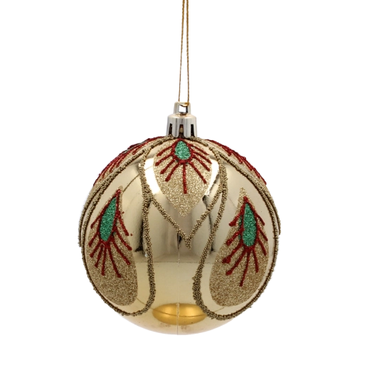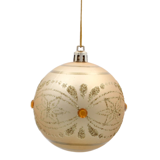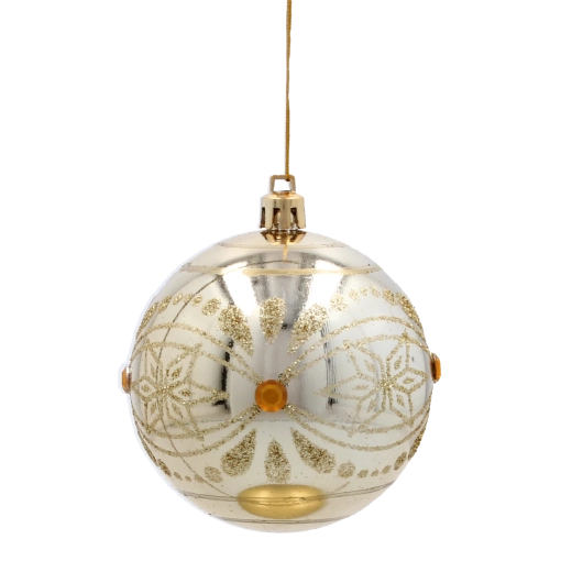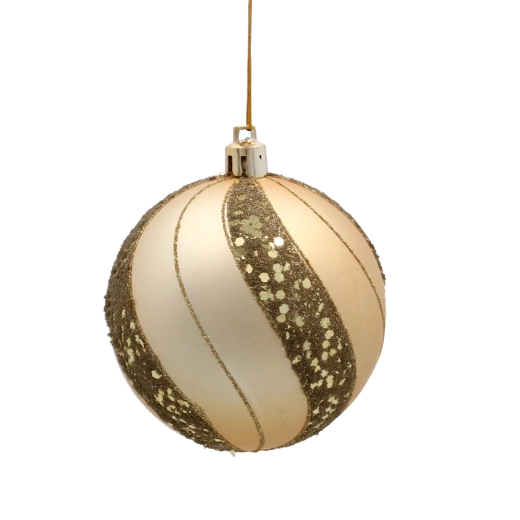 Elegancki zestaw sześciu bombek świątecznych w odcieniach złota i szampana doda Twojej choince luksusowego blasku i harmonijnego stylu. Każda bombka o średnicy 8 cm zdobiona jest unikalnymi motywami – od brokatowych ornamentów po wzór pawiego oka. Bombki wykonano z trwałego, nietłukącego się materiału, dzięki czemu świetnie sprawdzą się w domach z dziećmi i zwierzętami.