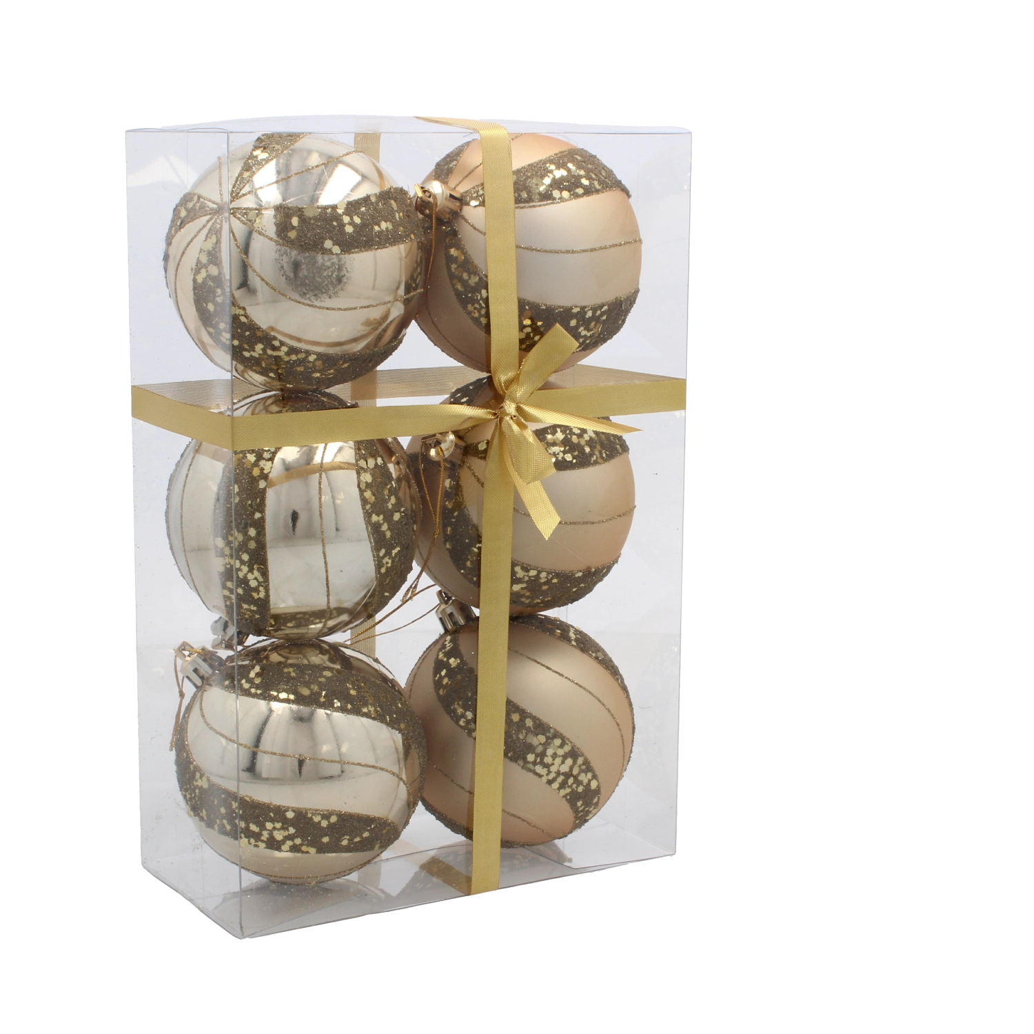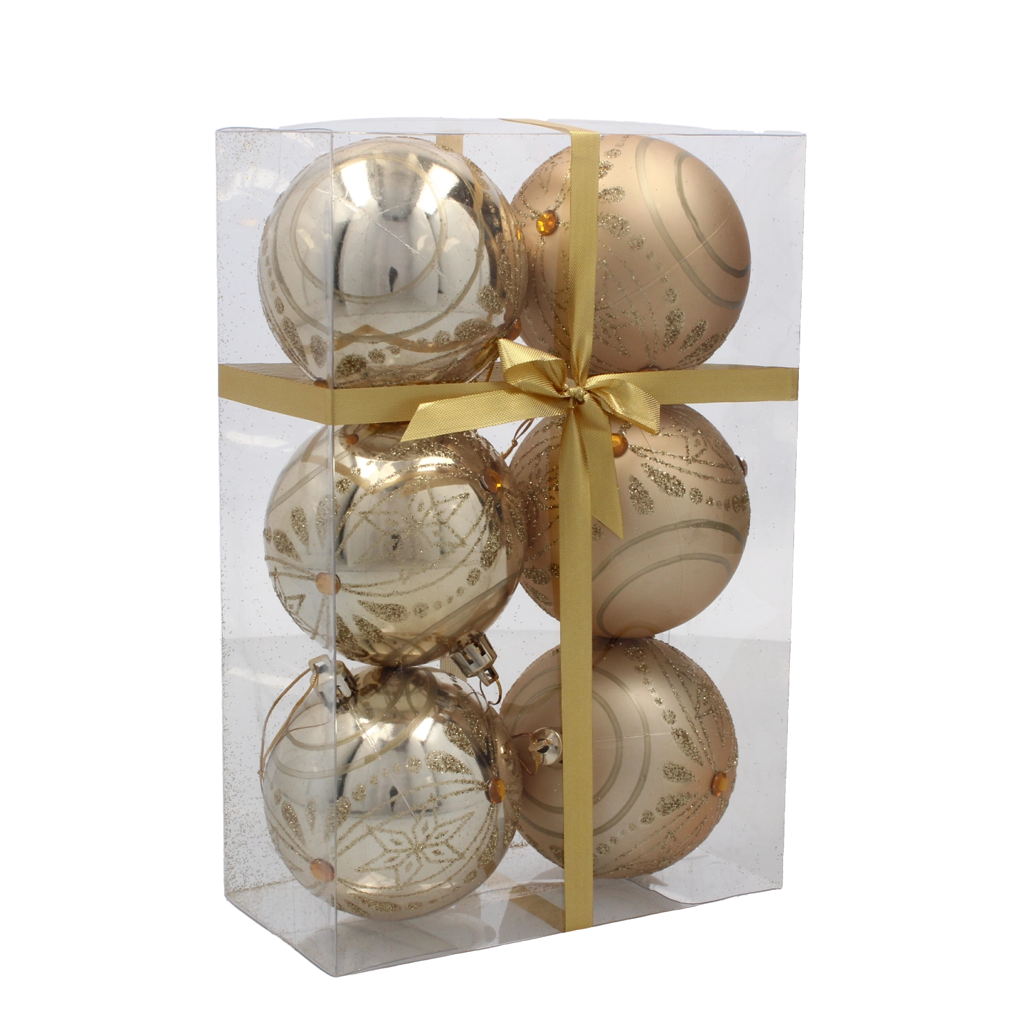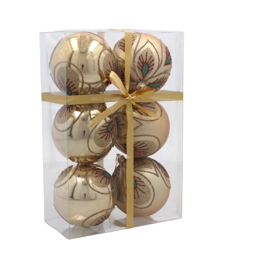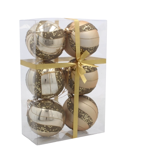 Zestaw świątecznych bombek złotych i szampańskich 8 cm – 6 szt.