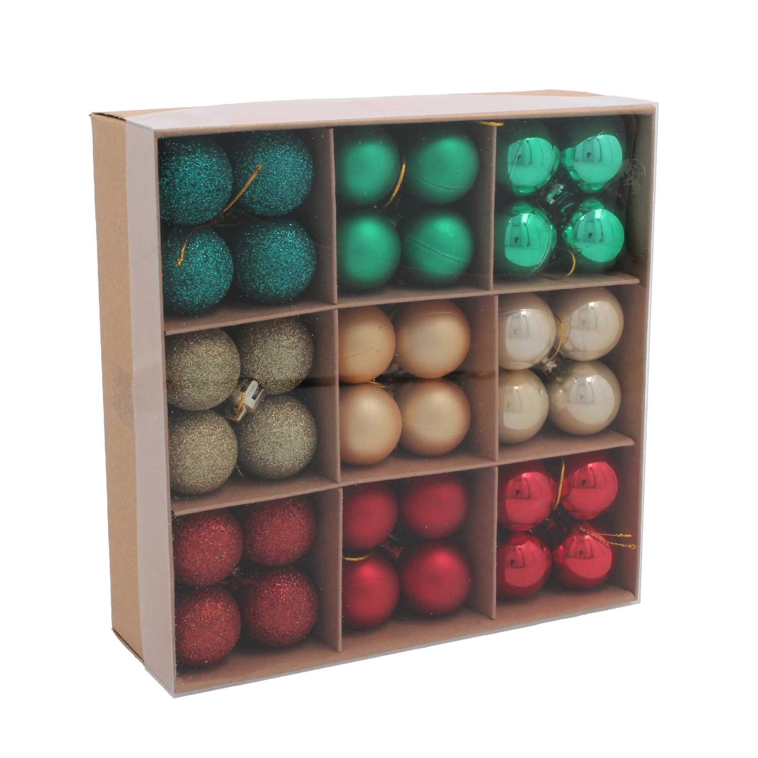 Ten uniwersalny zestaw bombek świątecznych w praktycznym pudełku oferuje bogaty wybór kolorów i wykończeń, aby idealnie dopasować się do pozostałych dekoracji. Kompaktowa średnica 3 cm jest idealna na drobniejsze gałązki, małe choinki oraz kreatywne projekty DIY.
