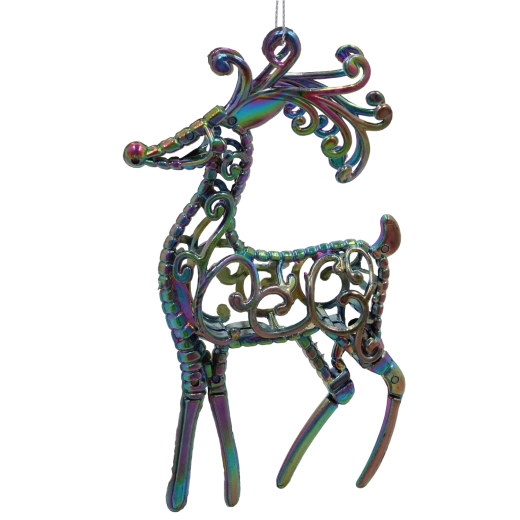 Zawieszana świąteczna ozdoba jeleń z tęczowym, iryzującym efektem 10 × 16 cm