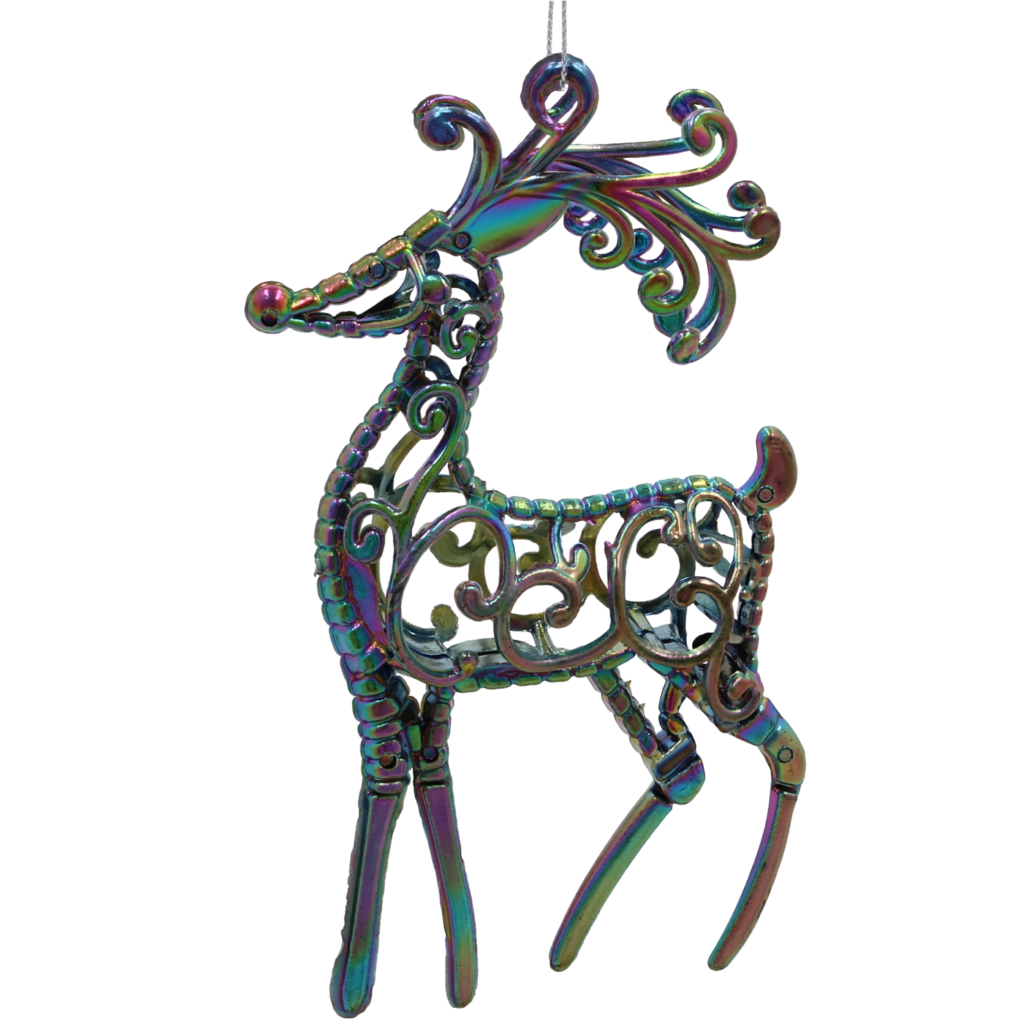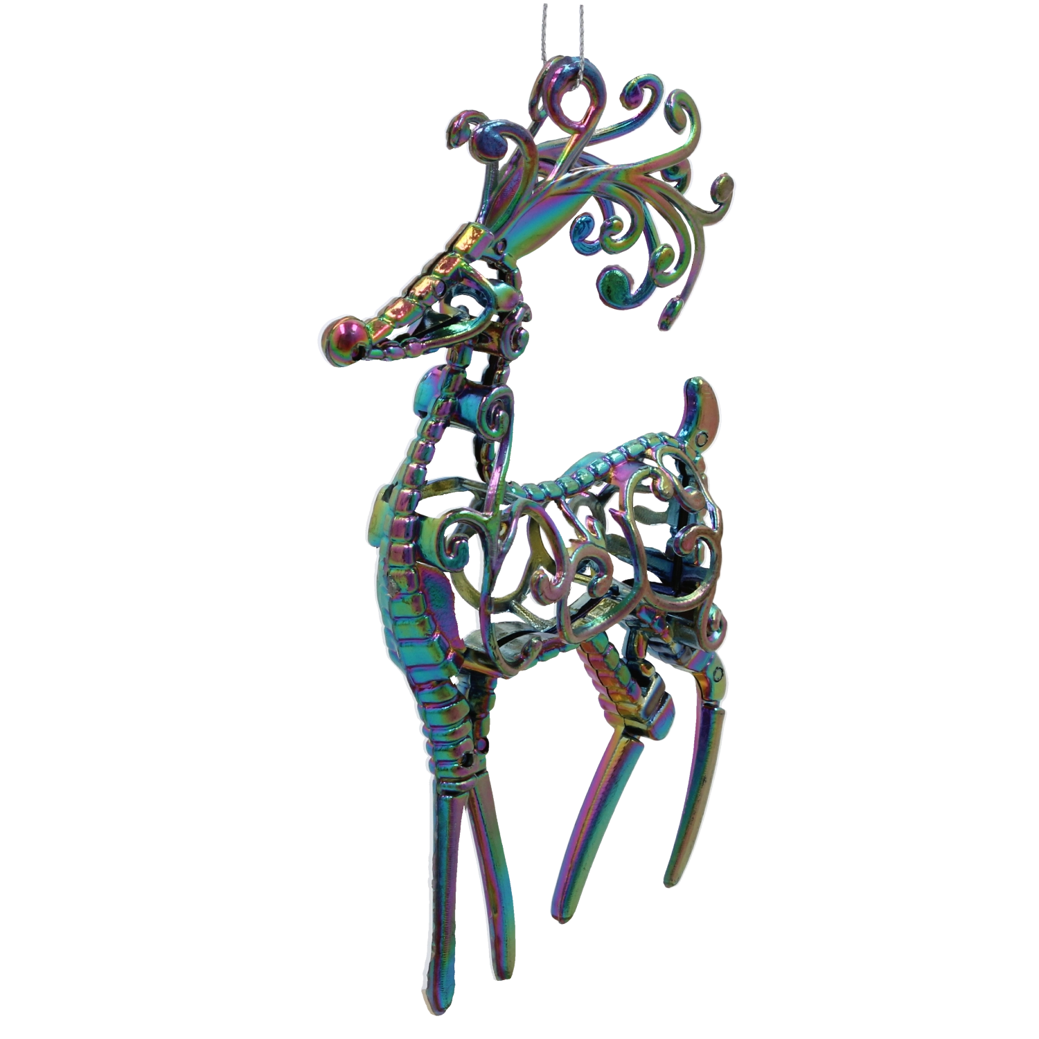Elegancka ozdoba w kształcie jelenia z tęczowym, iryzującym efektem doda Twojej choince i wnętrzu magicznej gry kolorowych refleksów. Lekki materiał umożliwia łatwe zawieszenie bez obciążania gałązek, a nowoczesny design doskonale dopełni świąteczne aranżacje w całym domu.