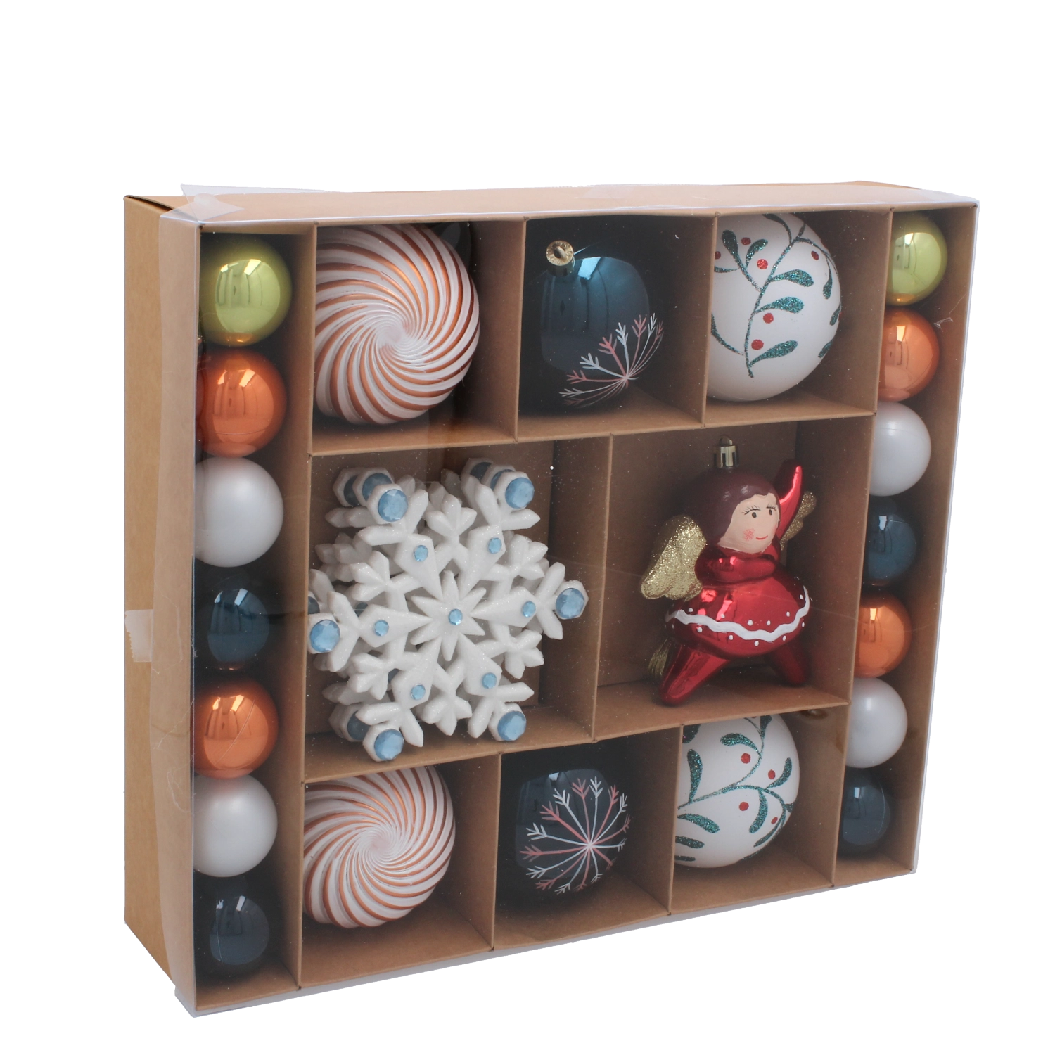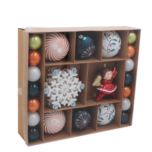 Ten uniwersalny zestaw oferuje harmonijne połączenie błyszczących kul, śnieżyn i figuralnych ozdób, dzięki czemu z łatwością dopasujesz dekorację do stylu nowoczesnego lub tradycyjnego. Każdy element zaprojektowano z myślą o szybkim i bezpiecznym zawieszeniu, aby strojenie choinki było radością dla całej rodziny.