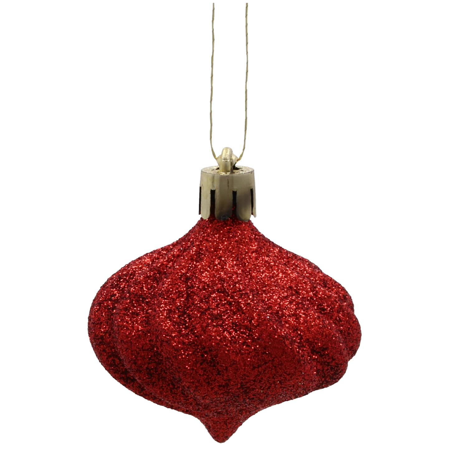 Czerwień, zieleń i złoto w błyszczącym i brokatowym wykończeniu wprowadzają tradycyjny, świąteczny nastrój i łatwo komponują się z innymi dekoracjami.