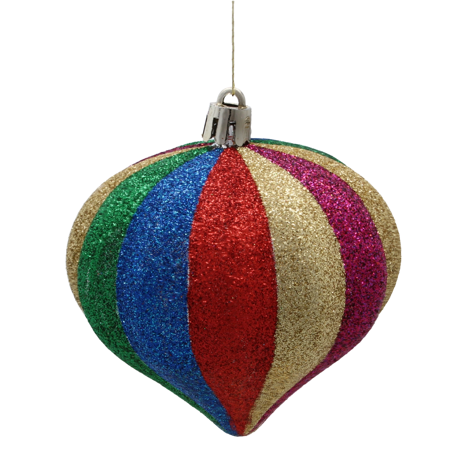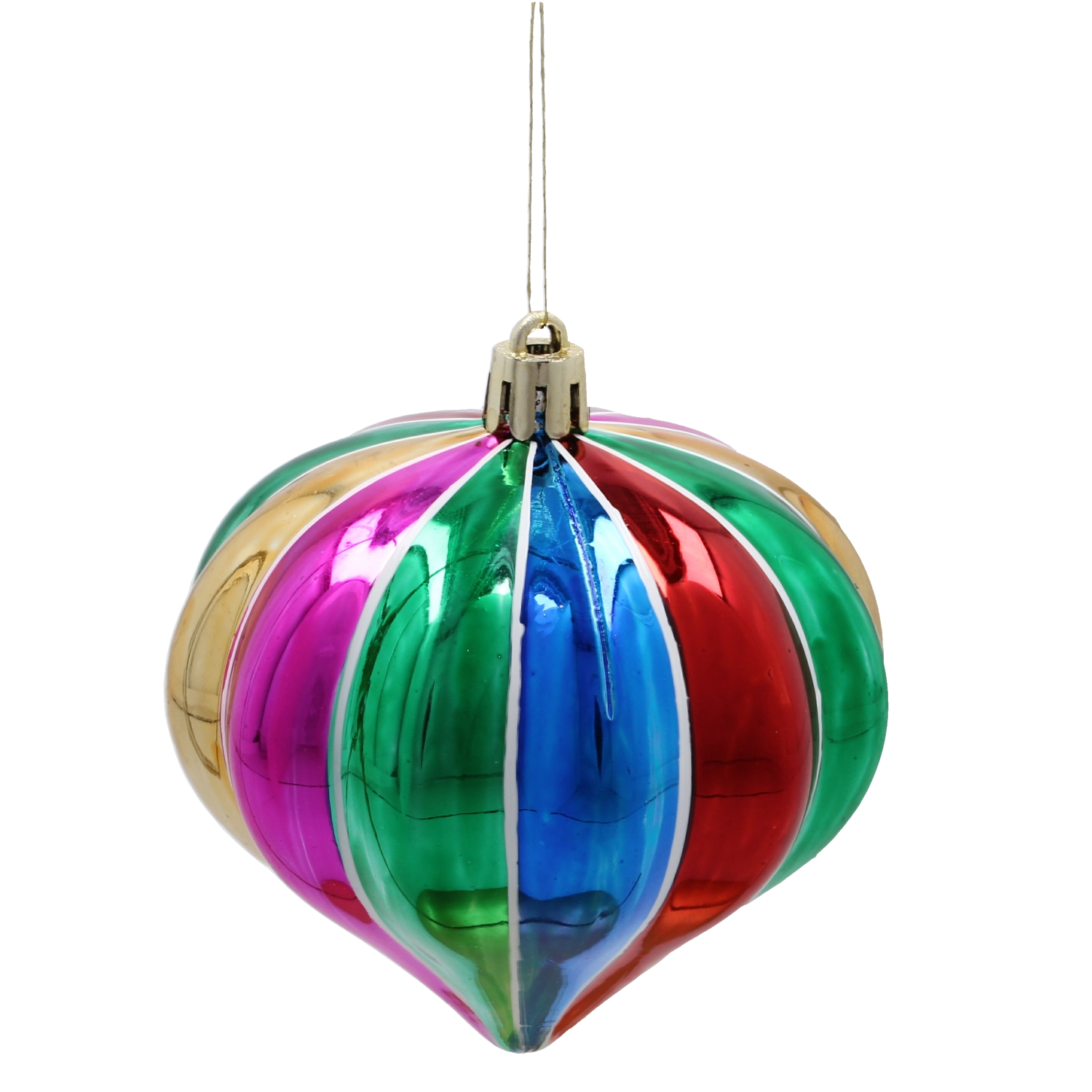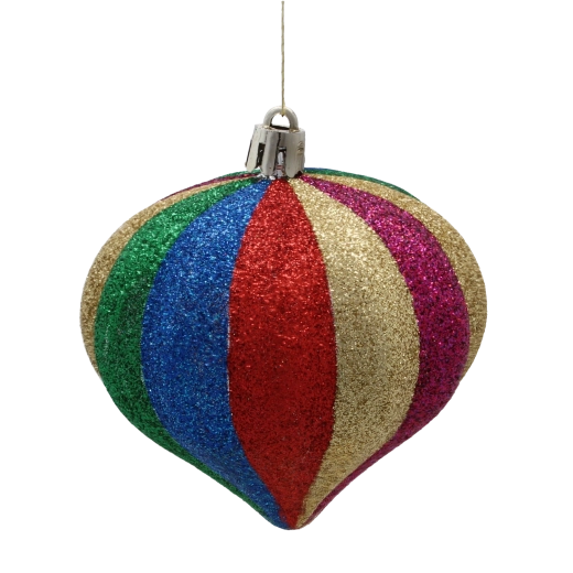 Pionowe wielokolorowe pasy i lśniąca powierzchnia natychmiast przyciągają wzrok i rozświetlają każdą choinkę oraz dekorację.