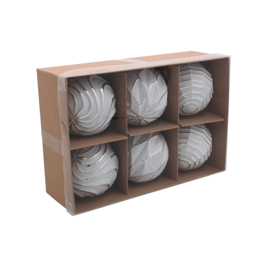 Zestaw bombek świątecznych 8 cm biało‑srebrny, 6 szt., nietłukące