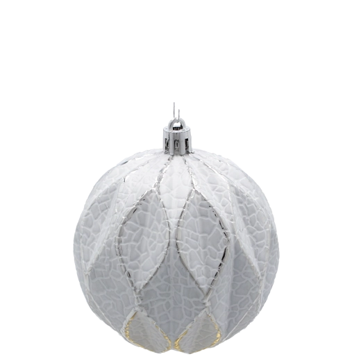 Ten zestaw bombek świątecznych w biało‑srebrnym wykończeniu wnosi do wnętrza ponadczasowy wygląd. Trzy różne wzory z wyrazistymi teksturami tworzą harmonijną całość i nadają choince stylowy, uroczysty charakter. Błyszcząca powierzchnia pięknie współgra ze światłem, dodając dekoracji głębi i iskry.