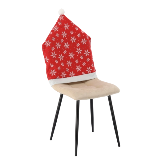 Pokrowiec wykonano z miękkiej tkaniny, przyjemnej w dotyku, która jednocześnie pomaga chronić oparcie krzesła przed zabrudzeniami i otarciami. Czerwień ze śnieżynkami, biała lamówka i pompon wprowadzają klasyczny, świąteczny urok i doskonale komponują się z innymi dekoracjami.