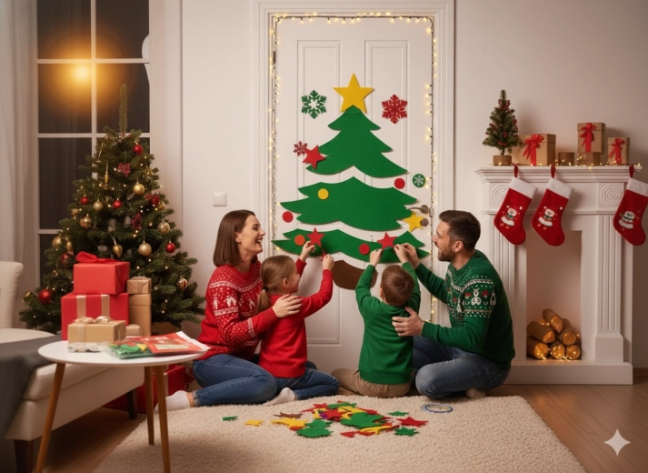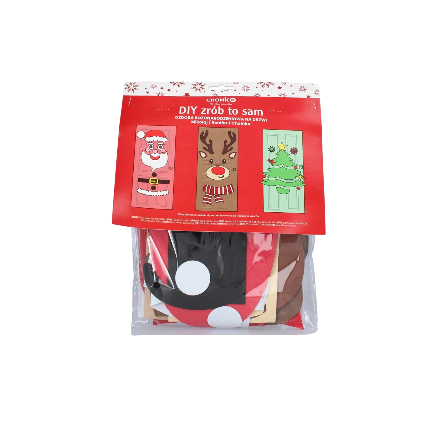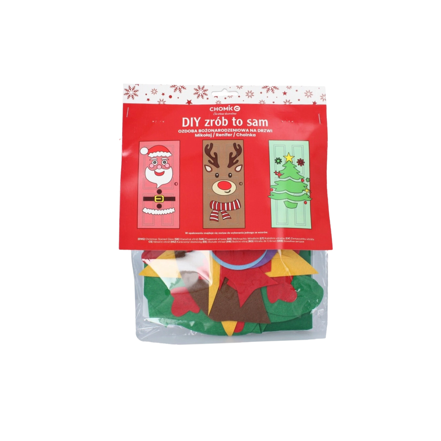 Ta świąteczna dekoracja zamieni każde drzwi wewnętrzne lub wejściowe w efektowny bożonarodzeniowy akcent. Miękkie filcowe i samoprzylepne elementy łatwo przymocujesz i w każdej chwili przearanżujesz – idealne dla dzieci i dorosłych. Wybierz motyw choinki, MIKOŁAJA lub renifera i stwórz oryginalną ozdobę dokładnie po swojemu.