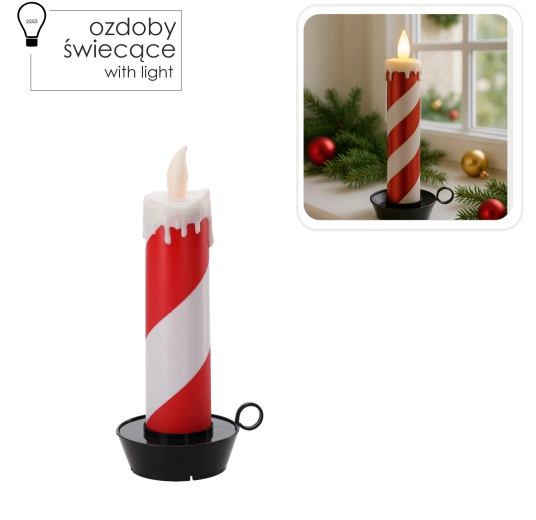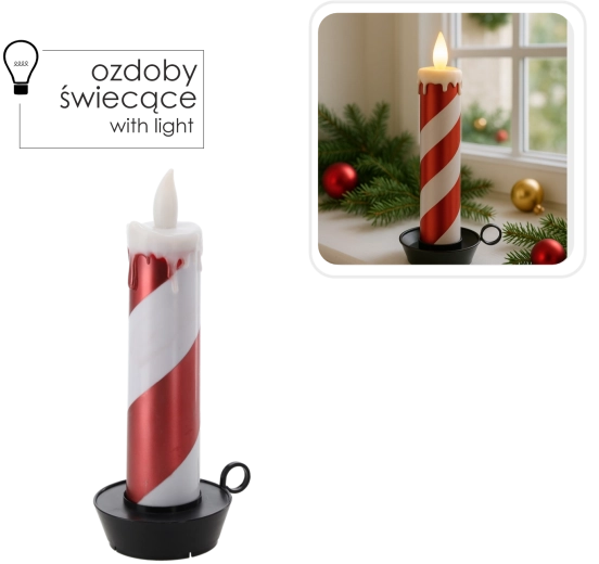Stwórz w domu magiczną, świąteczną atmosferę z dekoracyjną biało‑czerwoną świecą LED o wysokości 27,5 cm. Oferuje bezpieczne, bezpłomieniowe światło, realistyczny efekt płomyka oraz praktyczny timer 6/18 h. Dzięki zasilaniu bateryjnemu 2× AA łatwo ustawisz ją na stole, półce lub parapecie – bez kabli.