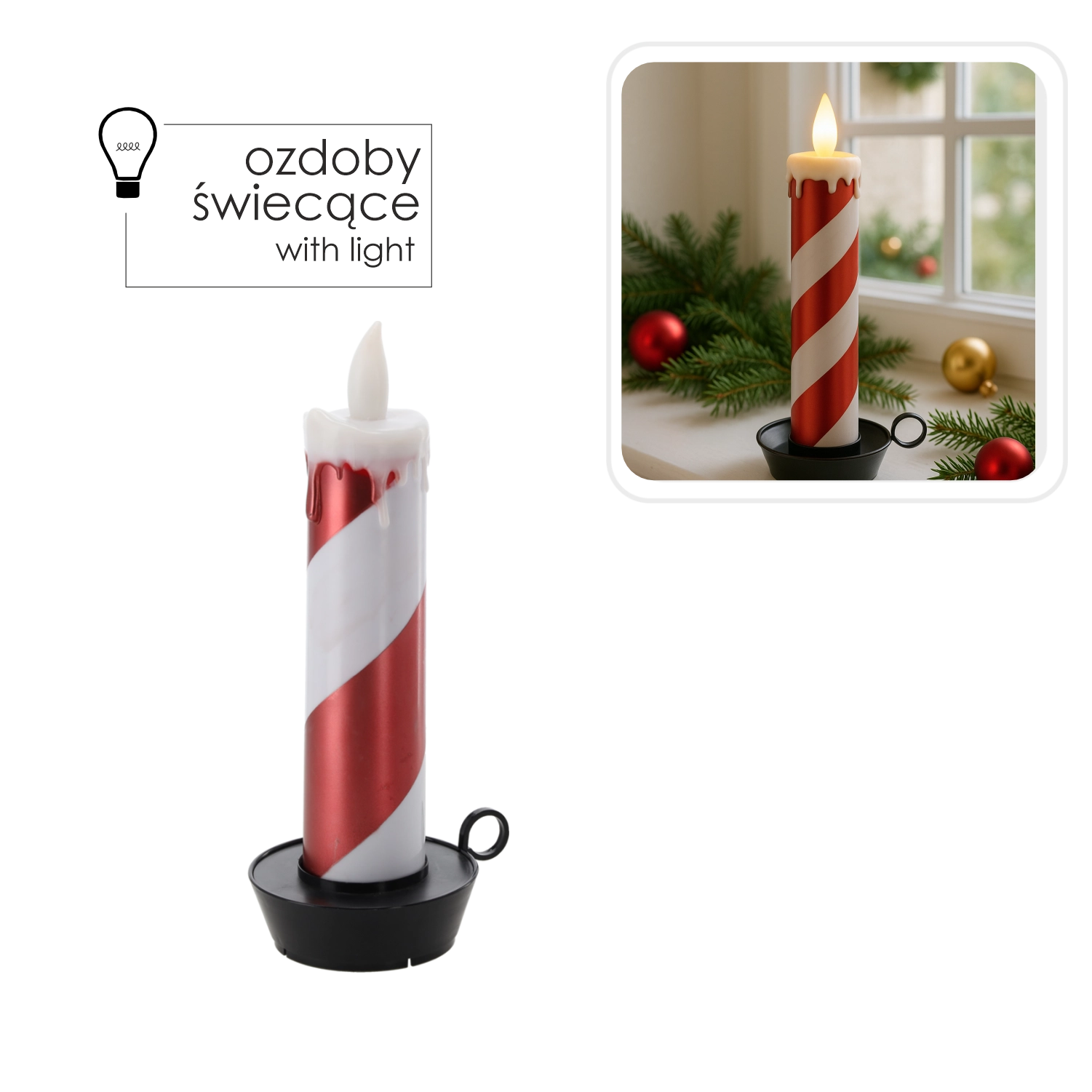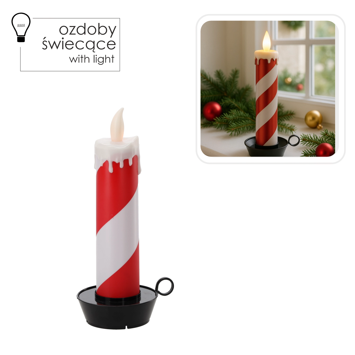Świąteczna świeca LED biało‑czerwona 10 × 10 × 27,5 cm z timerem